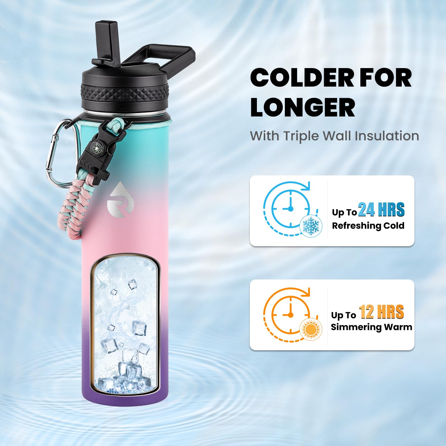 Triple Wall Insulation: Raymylo 24 oz Modern Insulated Water Bottle featuring copper plated triple wall vacuum insulation, is tested to keep your drinks icy cold for up to 48 hrs and reassuring warm 24 hrs. Get this iconic water bottle to up your fitness track, you'll fall for hydrating as every sip is absolutely cool