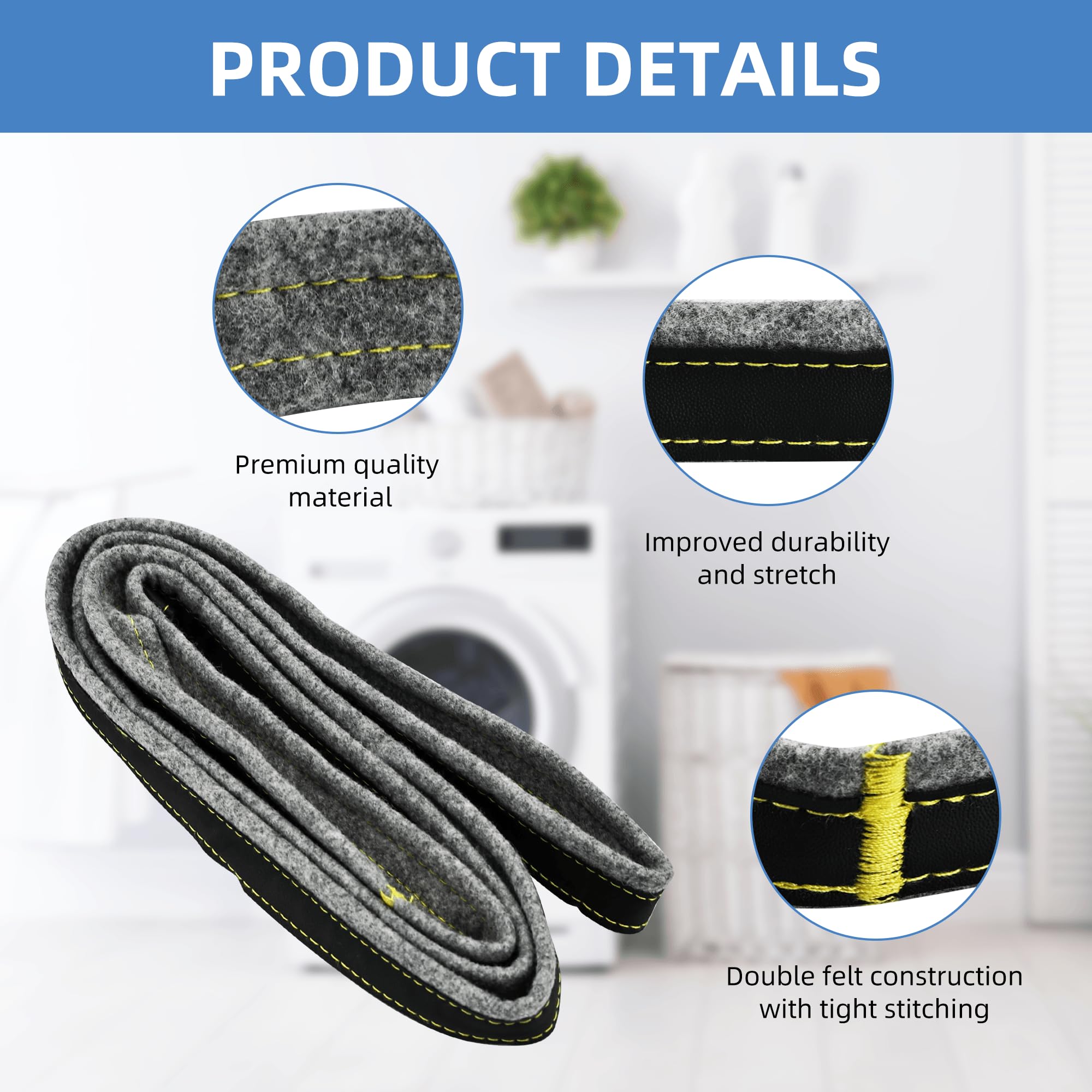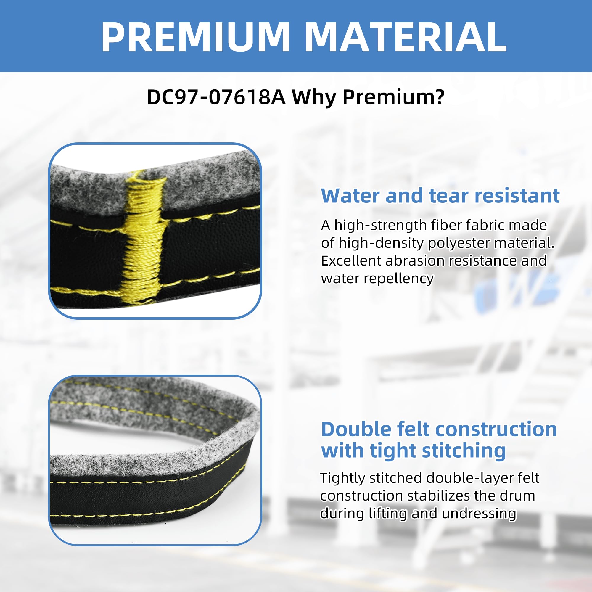 【Latest Quality】: Our NEW Upgraded DC97-07618A Drum Felt Seal Replacement is made from high-quality glass fiber high-temperature resistant materialhigh temperature resistant materials with added felt leather protection, ensuring durability and longevity. The double-layer felt construction is finely stitched tightly, making it more stable as the drum picks up and sheds clothes, allowing for faster drying rates and faster forwarding of the clothes. We have upgraded your samsung dryer felt seal replacement, which is perfect accessory in the long run!