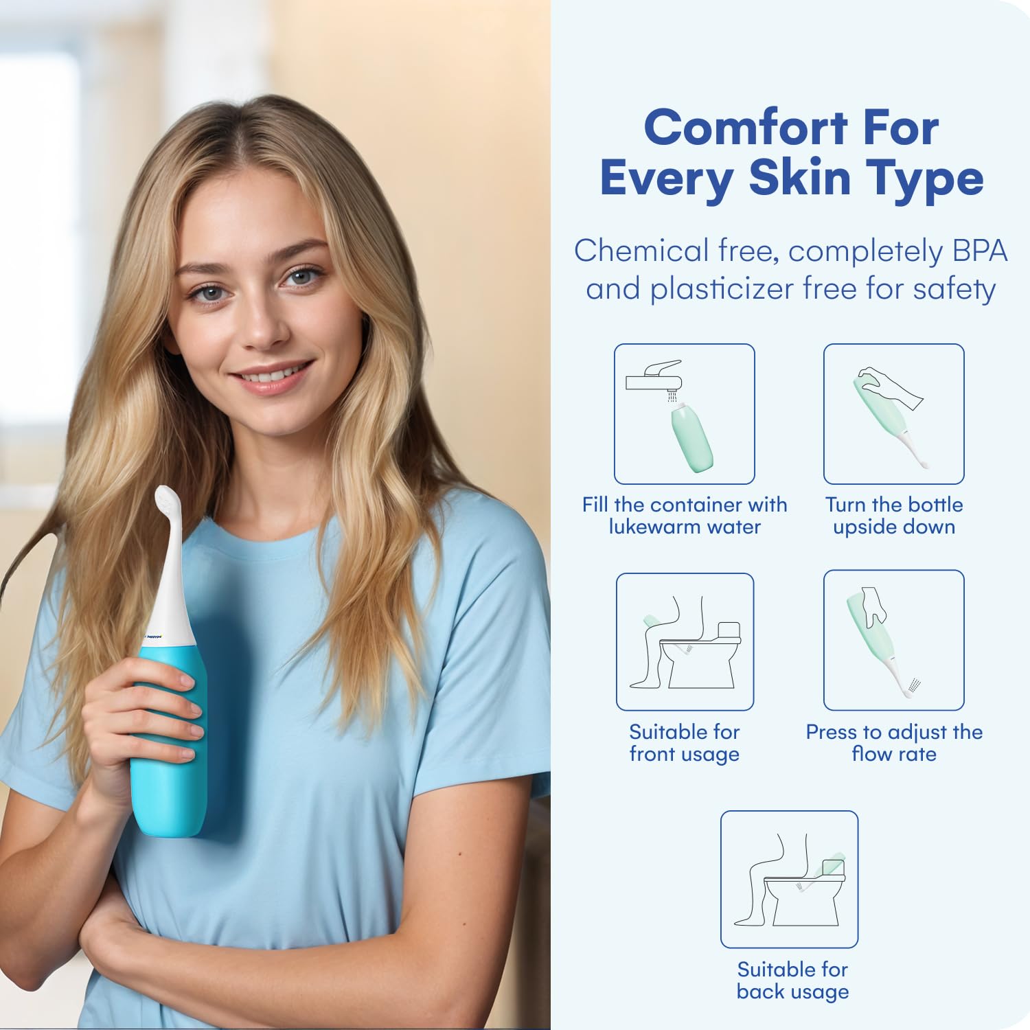 Portable Bidet For On-The-Go Hygiene: Enjoy gentle, thorough cleaning with this travel-friendly bidet. No batteries or connections are needed; just fill and squeeze for a refreshing water cleanse