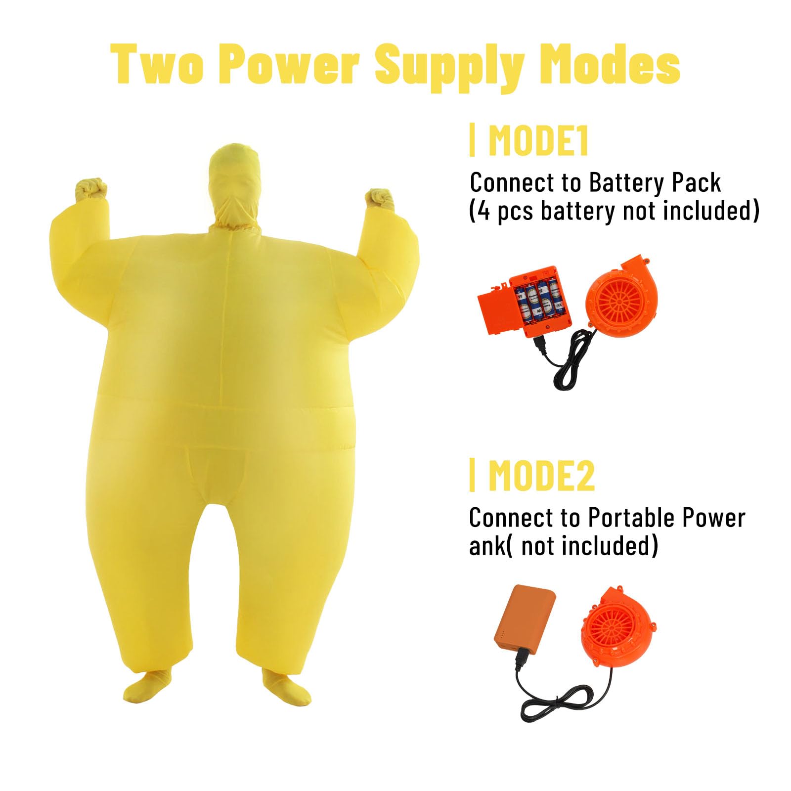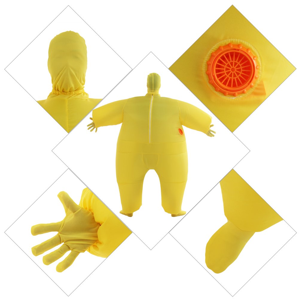 Quick Inflation – Built-in fan inflates the suit in seconds and keeps it full throughout your event.Included inflatable costume adult, cap, gloves and socks.