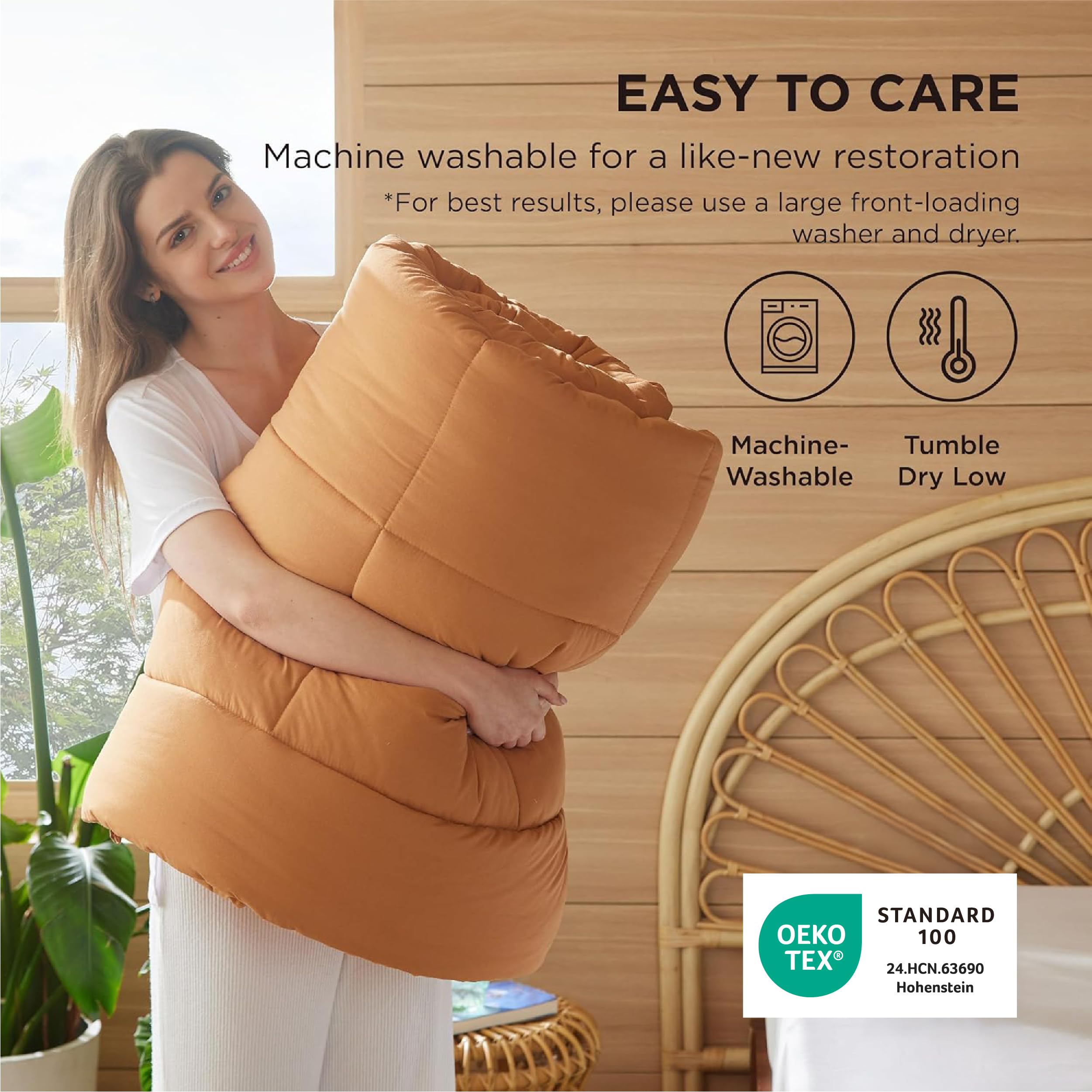 EASY TO CARE:Please gently fluff the comforter and let it rest for up to 24-48 hours after taking it out of the box to ensure maximum fluffiness. Machine wash separately in cold water on a gentle cycle and tumble dry low for a like-new restoration