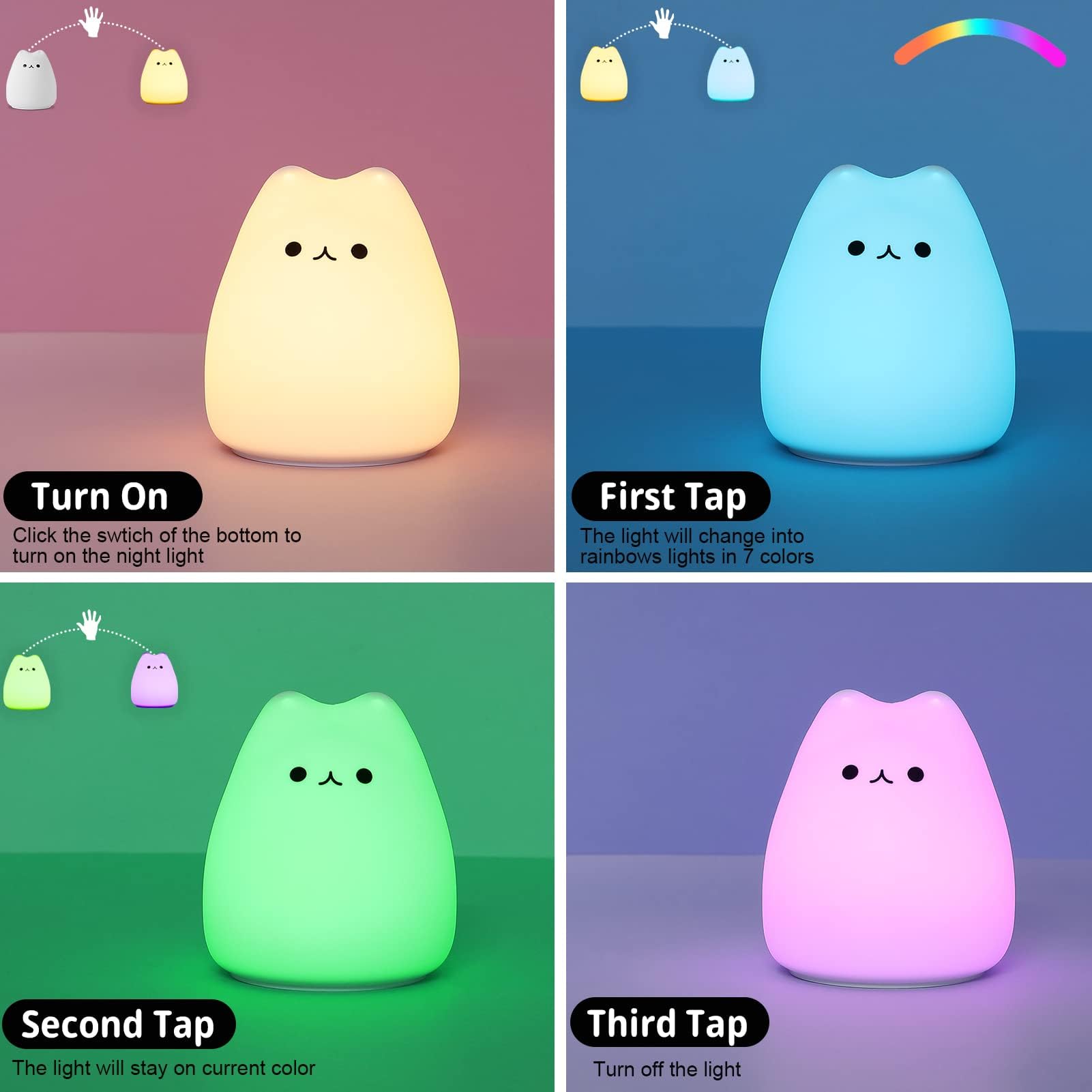 Features: 1. This lamp uses AAA batteries and is easy to use. 2. This lamp has seven colors of light that can be adjusted as desired. 3. Soft silicone material with a cute design.
