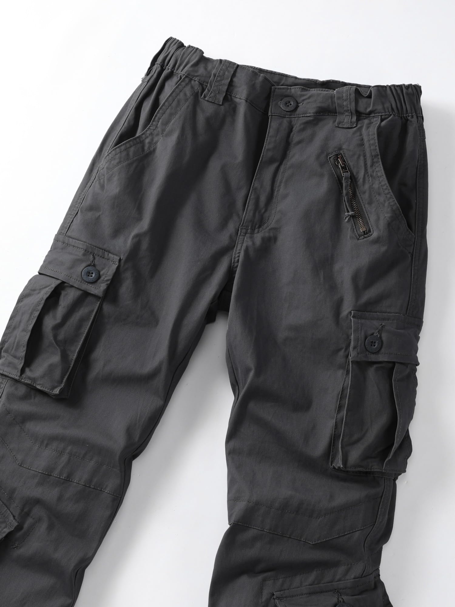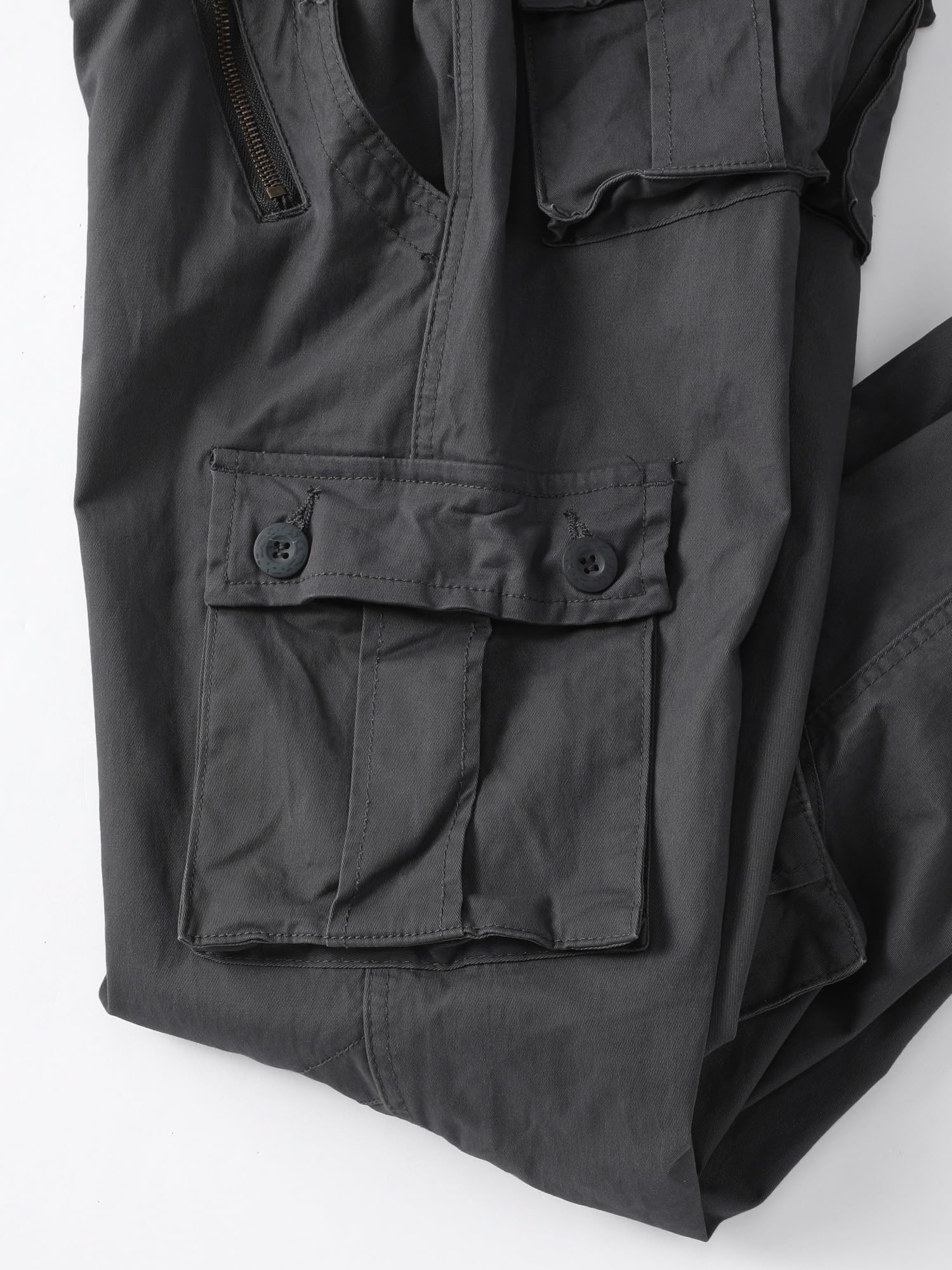 Product Design:Classic cargo pants with 8 pockets, all three-dimensional design with hand pockets x2,extra buttoned flap pockets x2 , side fast opened large pocket x2,rear pockets x2, makes it easier to carry additional personal things,Designed with a relaxed fit through the seat and thigh, these men's casual wear will keep you comfortable during any task.It is made of easy care wrinkle resistant fabrics, roomy pockets & sturdy zippers & buttons.