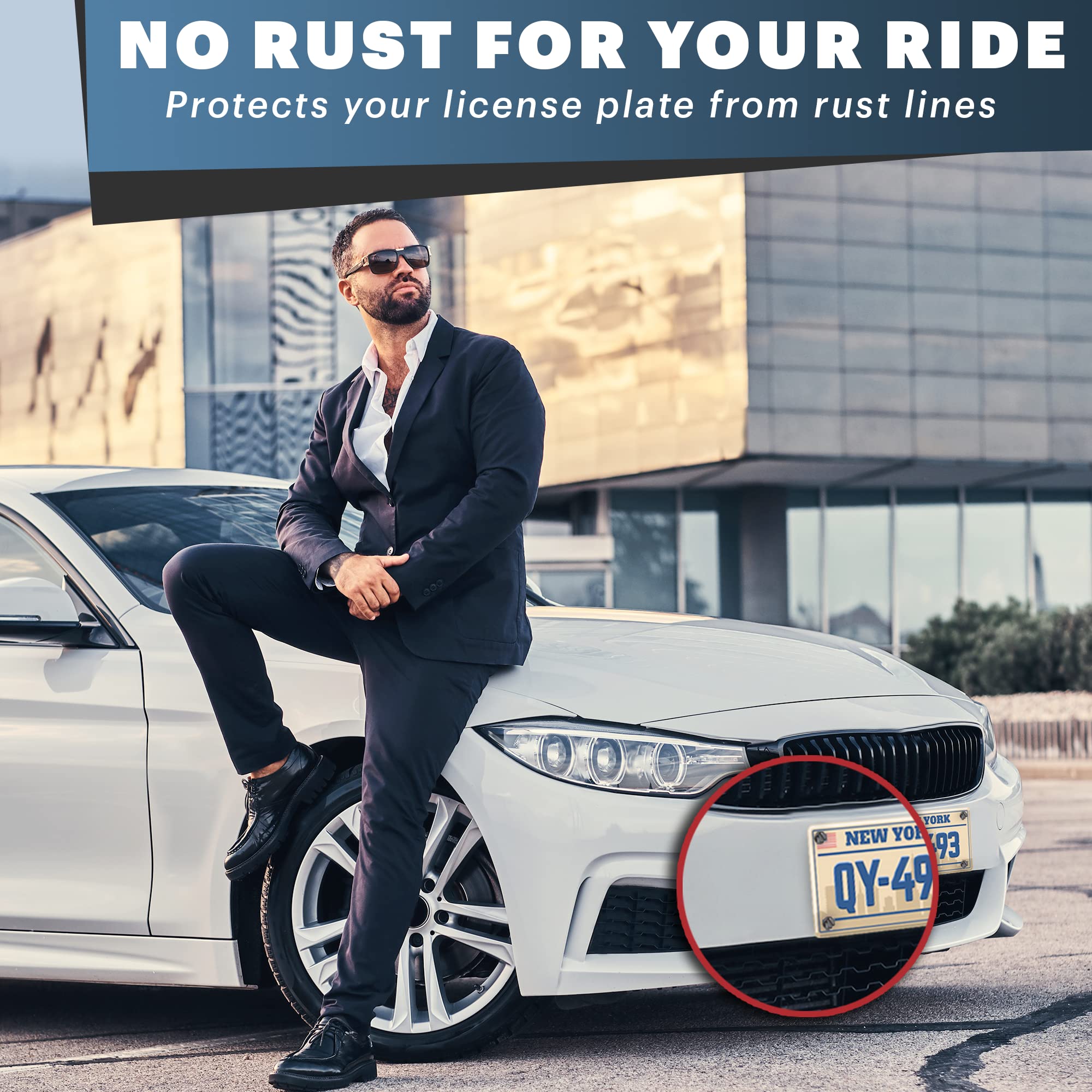 RUSTPROOF HARDWARE: We use rustproof marine grade type 316 stainless steel precision-made screws to make sure you never have to deal with unsightly rusty screws and rust lines on your license plates and frames. And you’ll never have to worry about these screws rusting in place.
