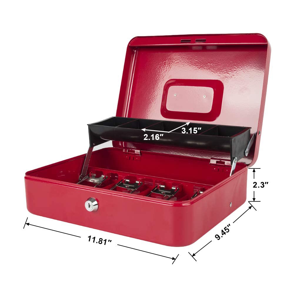 SIZE AND COLOR: 11.81"x 9.45"x 3.54" (300*240*90mm), Red. Perfect safe lock box for festivals. Smaller than some but big enough to store all the cash you need, it’s the perfect size for traveling and daily using.