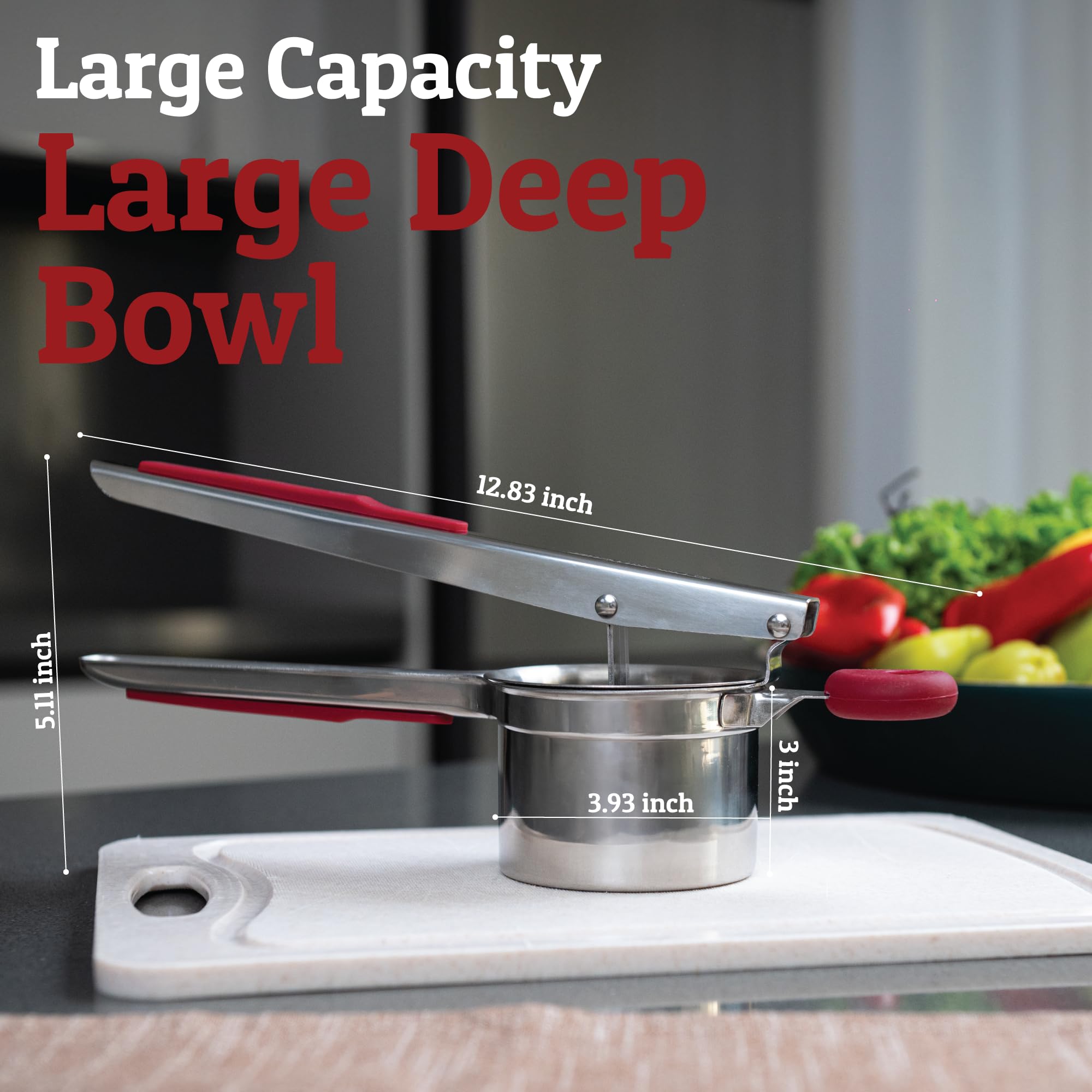 Soft Touch Silicone Ease - Potato Ricing and Mashing is redefined with our ergonomically designed, cushioned handles. Slip-free and soft to the touch, creating the perfect mash becomes a stress-free task