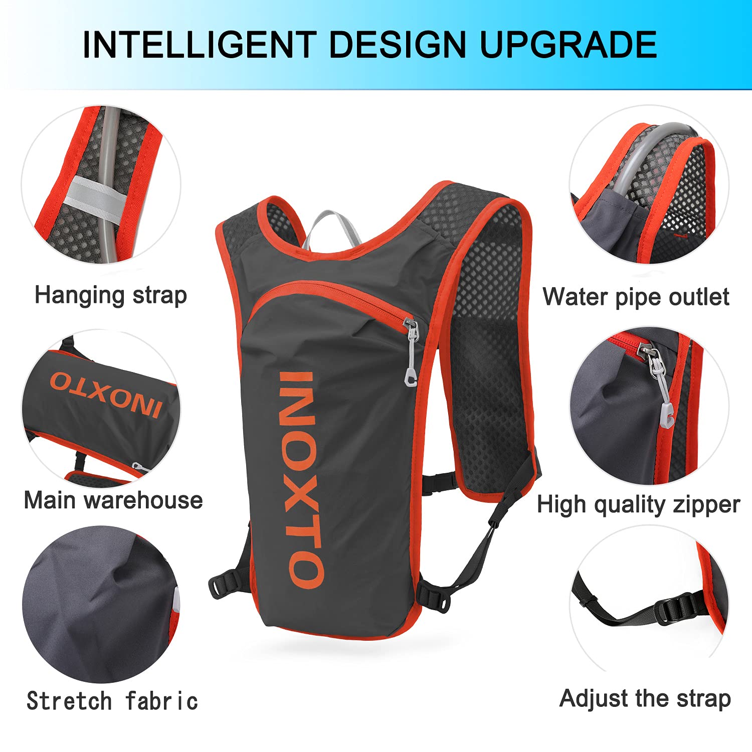 ❤ 【Ultra-lightweight design】 High-quality nylon material and ultra-lightweight design make it more comfortable to drive. The INOXTO Sport Backpack weighs only 140 grams and can hold 1.5 liters in the main compartment. In addition, the left and right belts have pockets for storing 250 ml PET bottles. Next to the main pocket, there is a pocket for storing mobile phones and items, so you can jog while listening to music!