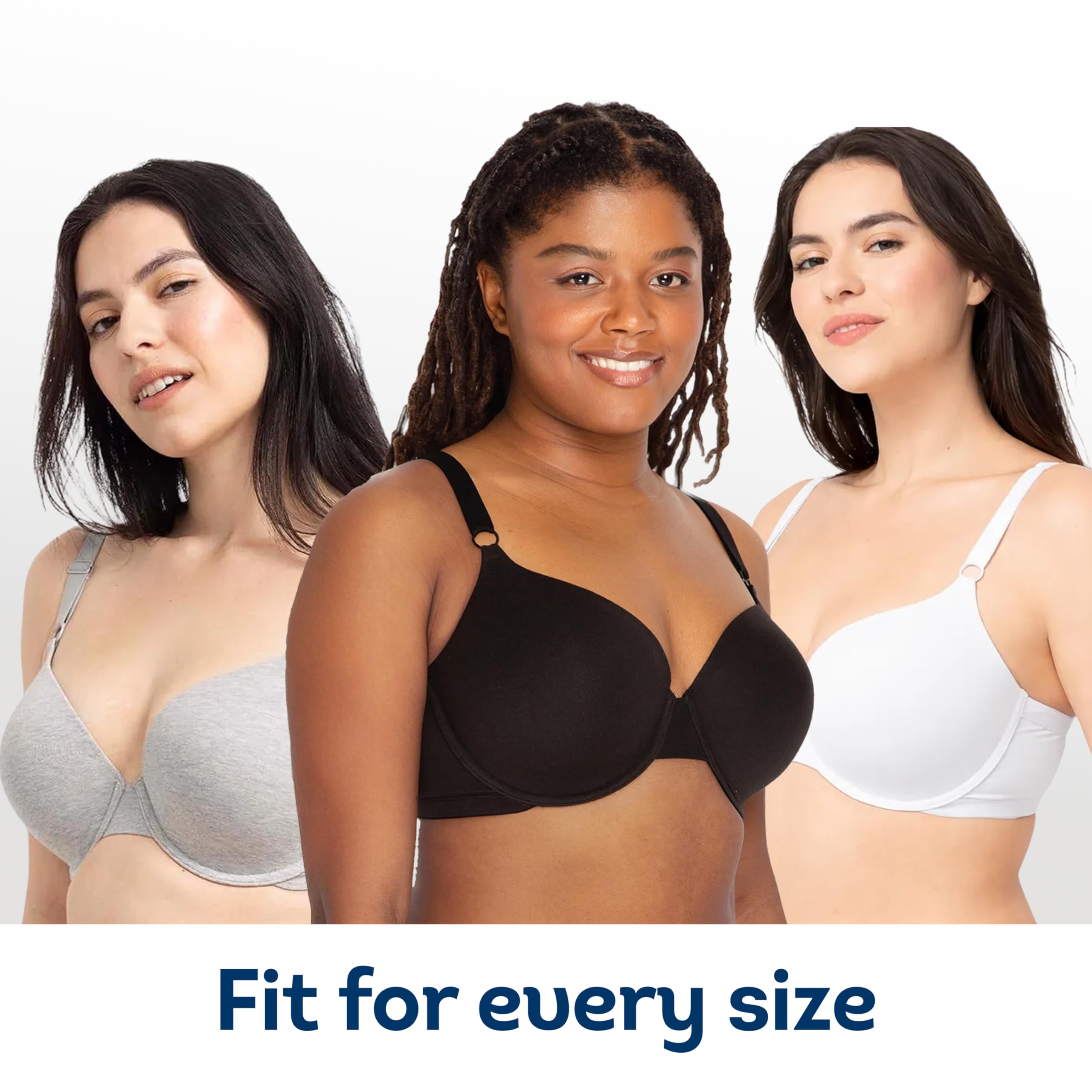 Description The Fruit of the Loom women's 3-pack T-shirt bra is your new favorite no show bra. The smooth, lightly lined cups are invisible under shirts, but one thing you won't be able to hide is your confidence. This full coverage bra is designed with thick adjustable straps and underwire for all-day comfort and support. Fruit of the Loom has been one of America's most trusted brands for over 160 years. We promise to deliver quality undergarments at an affordable price, always. Start everyday happy with Fruit of the Loom.