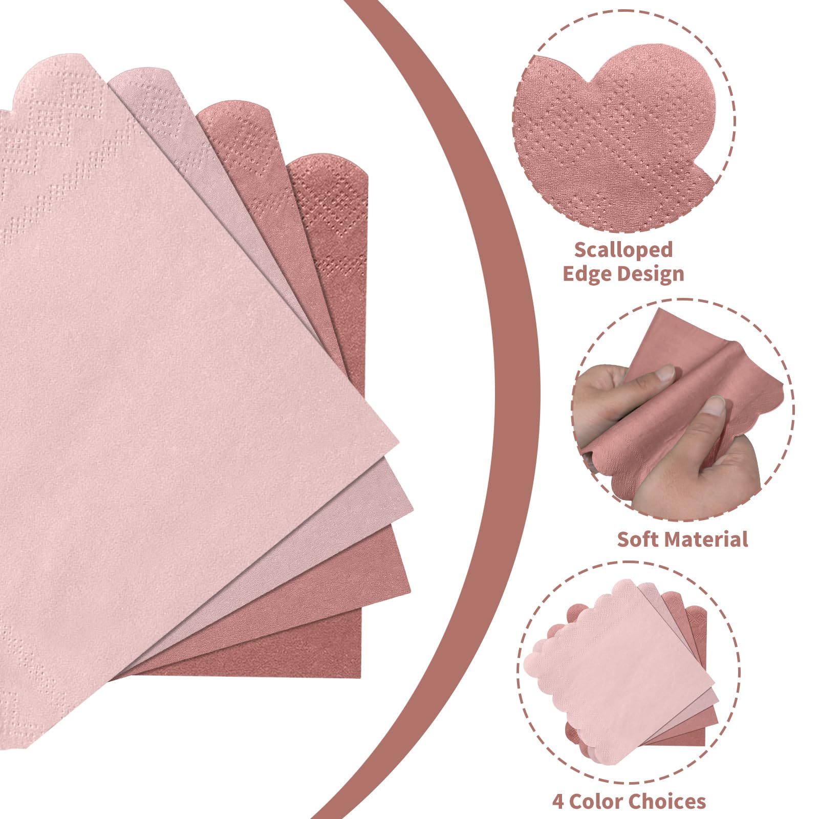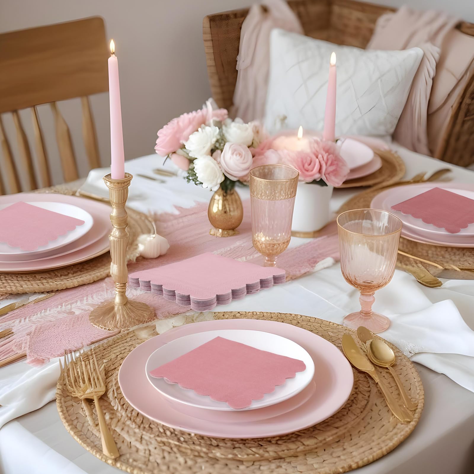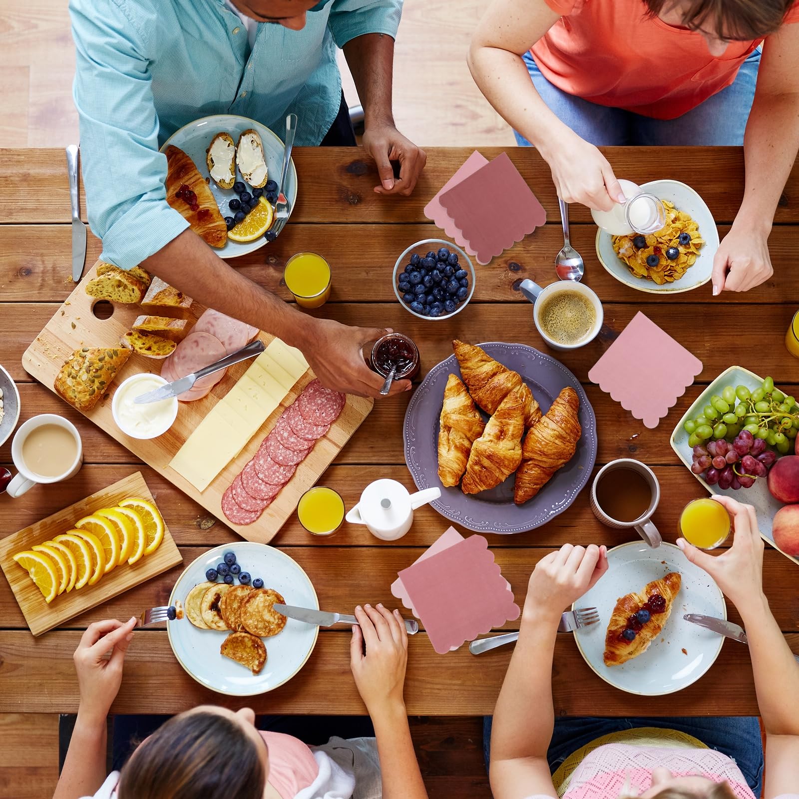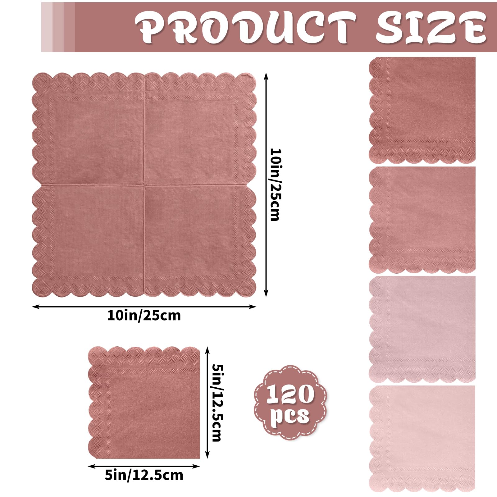【You Will Get】The package contains 120 pack dusty pink napkins, which are enough for your daily life or party time. Pink scalloped napkins suitable for dinner, cocktail, beverage and other drinks.