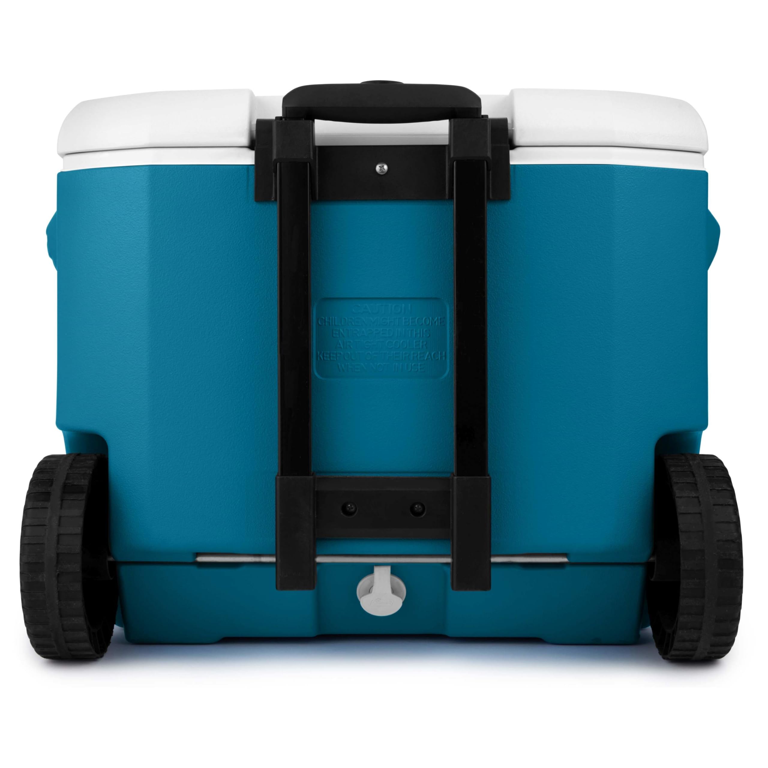 Meet the Chiller Series Coolers designed to be easy to take with you on every adventure. The Coleman Chiller 60-Quart Cooler With Wheels' recessed wheels and retractable handle with comfort grip make it easy to move so you can get to the fun faster. Whether you’re cheering on the sidelines or camping with your crew, TempLock insulation keeps drinks ice cold for whatever the day brings.