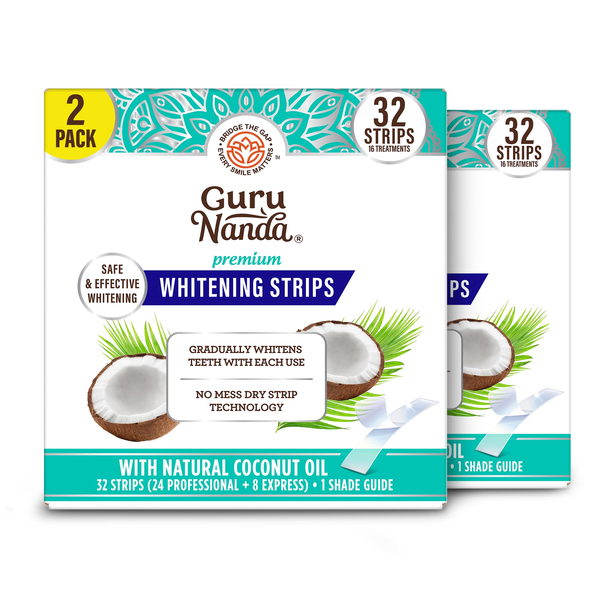 Reveal a brighter smile with GuruNanda Teeth Whitening Strips. Our dry-strip formula combines hydrogen peroxide with soothing coconut extracts, helping to break down stains & whiten teeth.