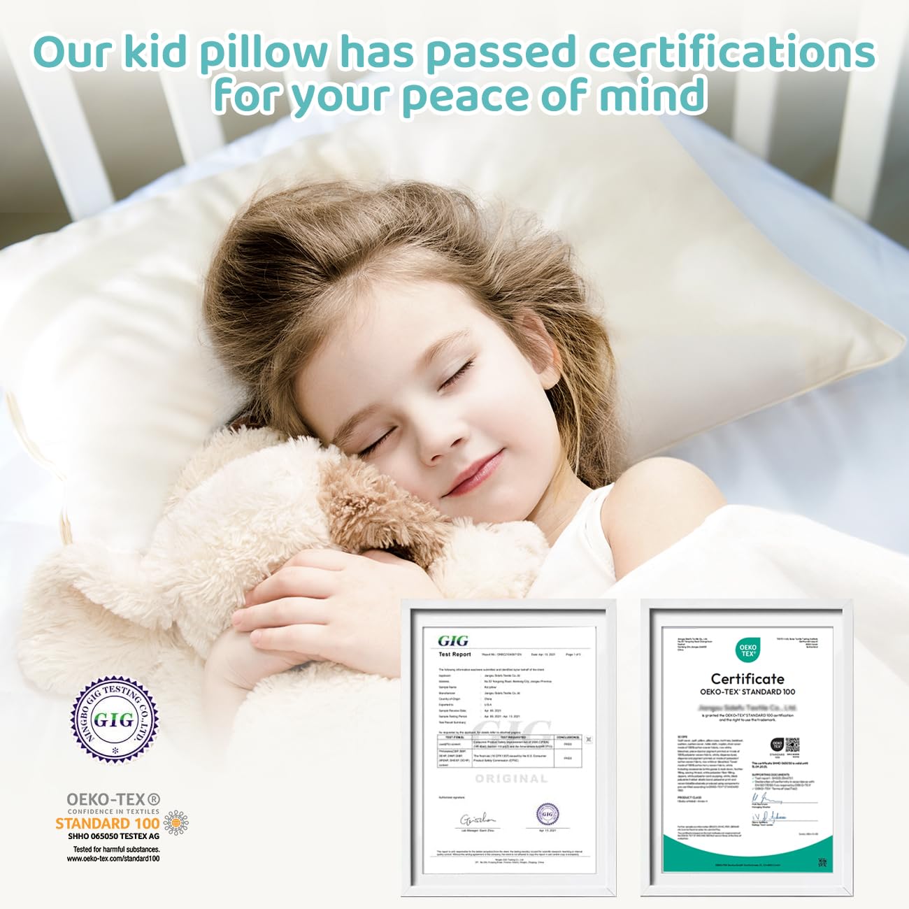 👑CPSC CERTIFIED & ORGANIC: Our kids pillow for sleeping is rigorously tested and certified by leading global standards—CPSC for compliance, OEKO-TEX Standard 100 for organic integrity. Each certification ensures trusted quality, giving you confidence in every detail.