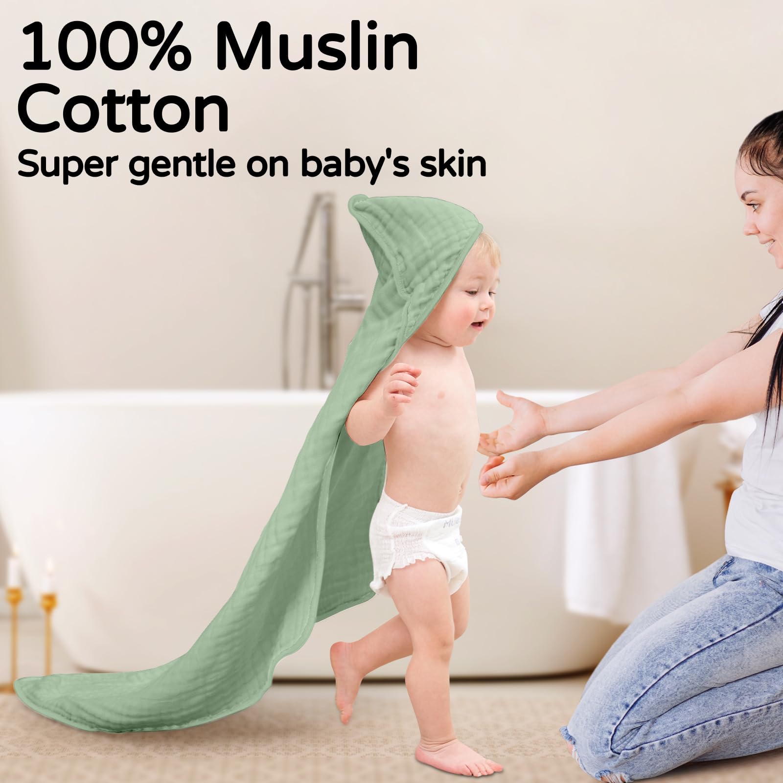 [Excellent Durability] - The 6 layers thickness muslin design is long-lasting enough for everyday use. Sized in 32 x 32 inches, the hooded baby towels are suitable for newborns, infants, toddlers, and small kids up to 3 years old.