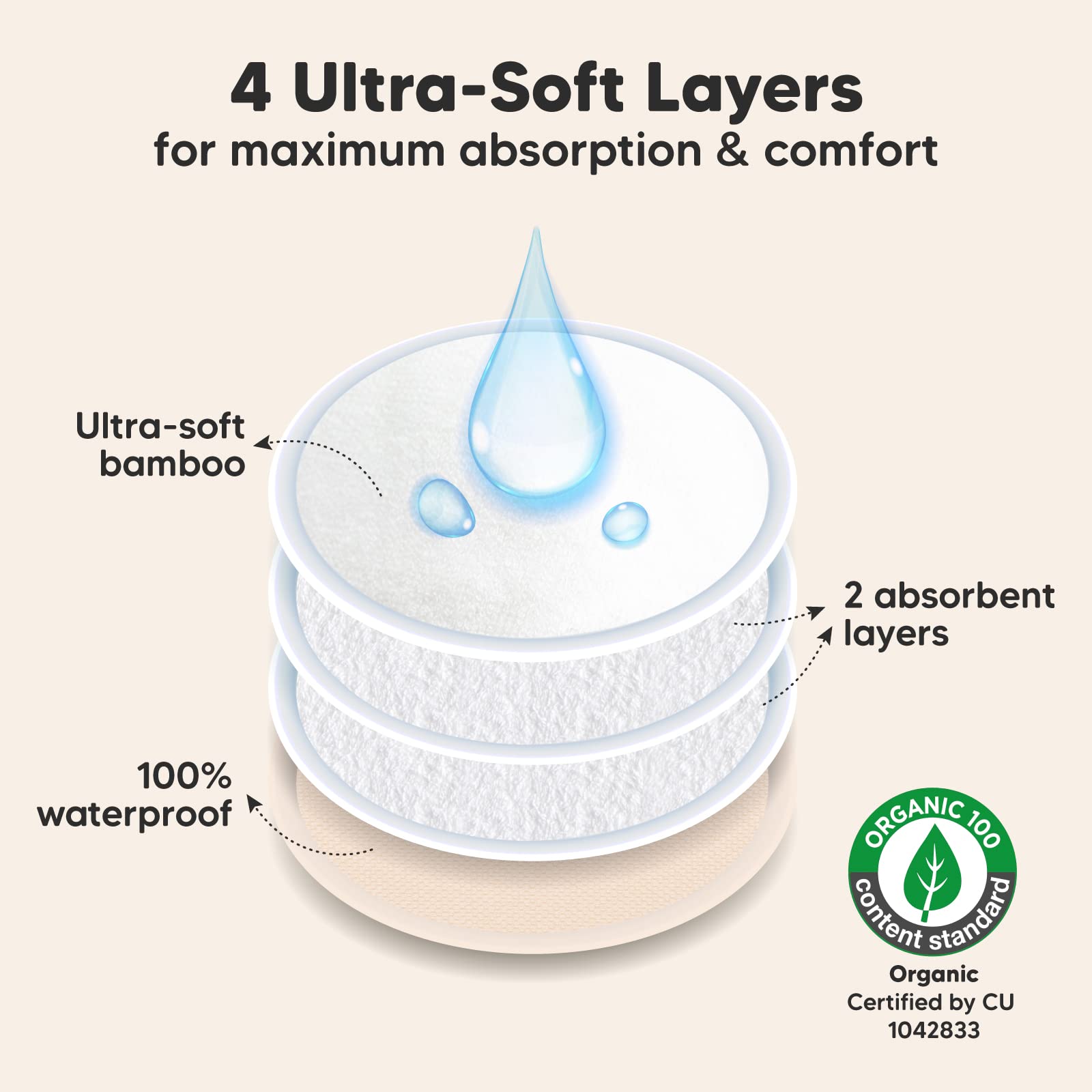 Great For Leakages – Leakage is a thing of the past with our 4-layer nursing pads. KeaBabies Nursing Pads feature three layers of ultra-absorbent viscose derived from bamboo, sealed with a protective waterproof outer layer for extra security on the nipple pads. Tip: If you experience a heavy flow, please replace breast pads every 5-6 hours.
