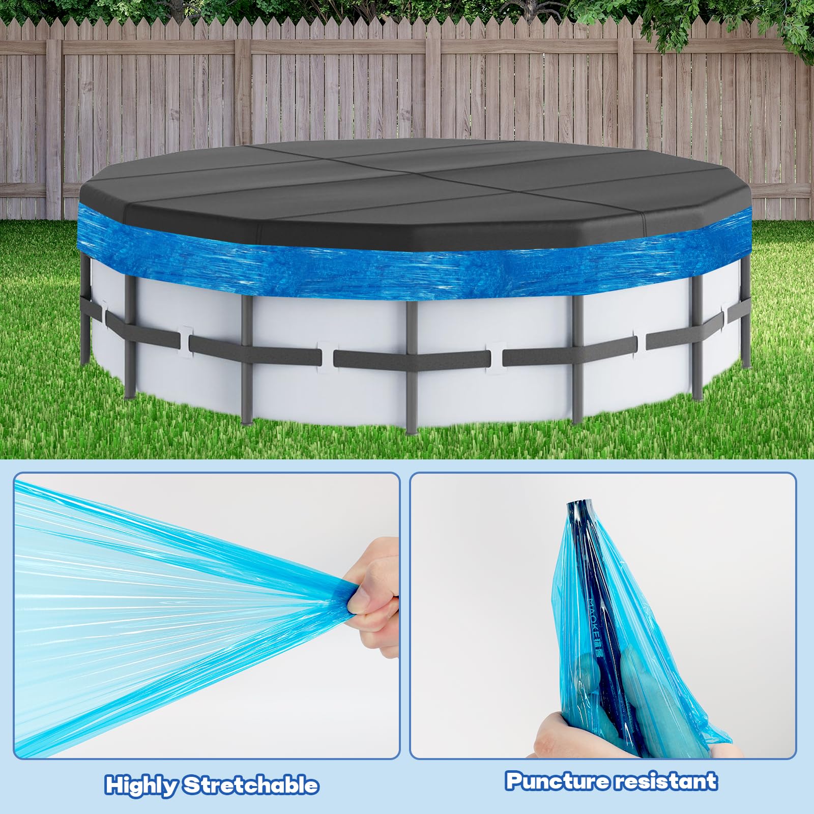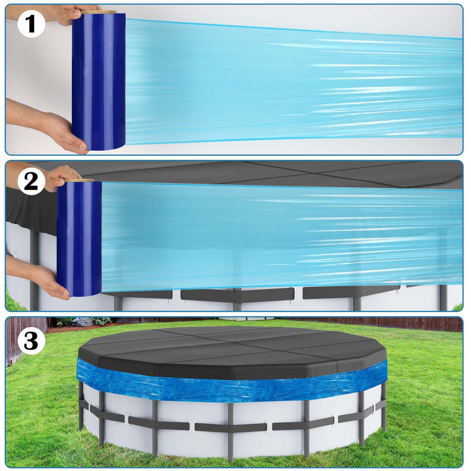 Film length: The total length of winter pool cover wrap is 1200 feet, width is 12 inch, which allows you to wrap it around your above ground pool many times for optimal sealing, enough for home use.