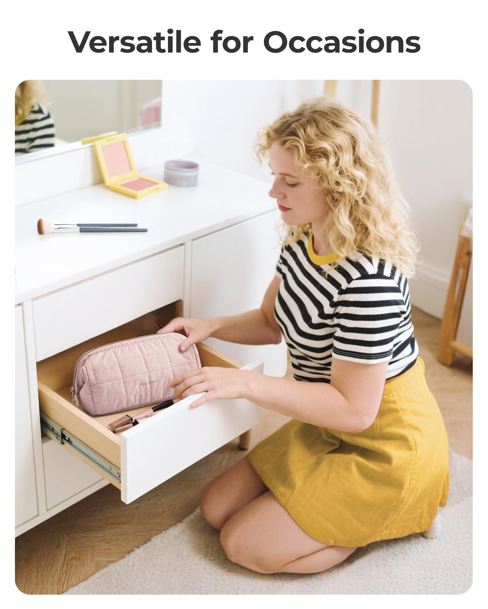 【EASY-CLEAN POCKET】- This well-crafted make up bag features dirt-proof pockets with PVC lining to hold your makeup brushes.Travel cosmetic bags for women ensure that your skin care and beauty products remain protected and spill-proof. Perfect for women who are always on the go