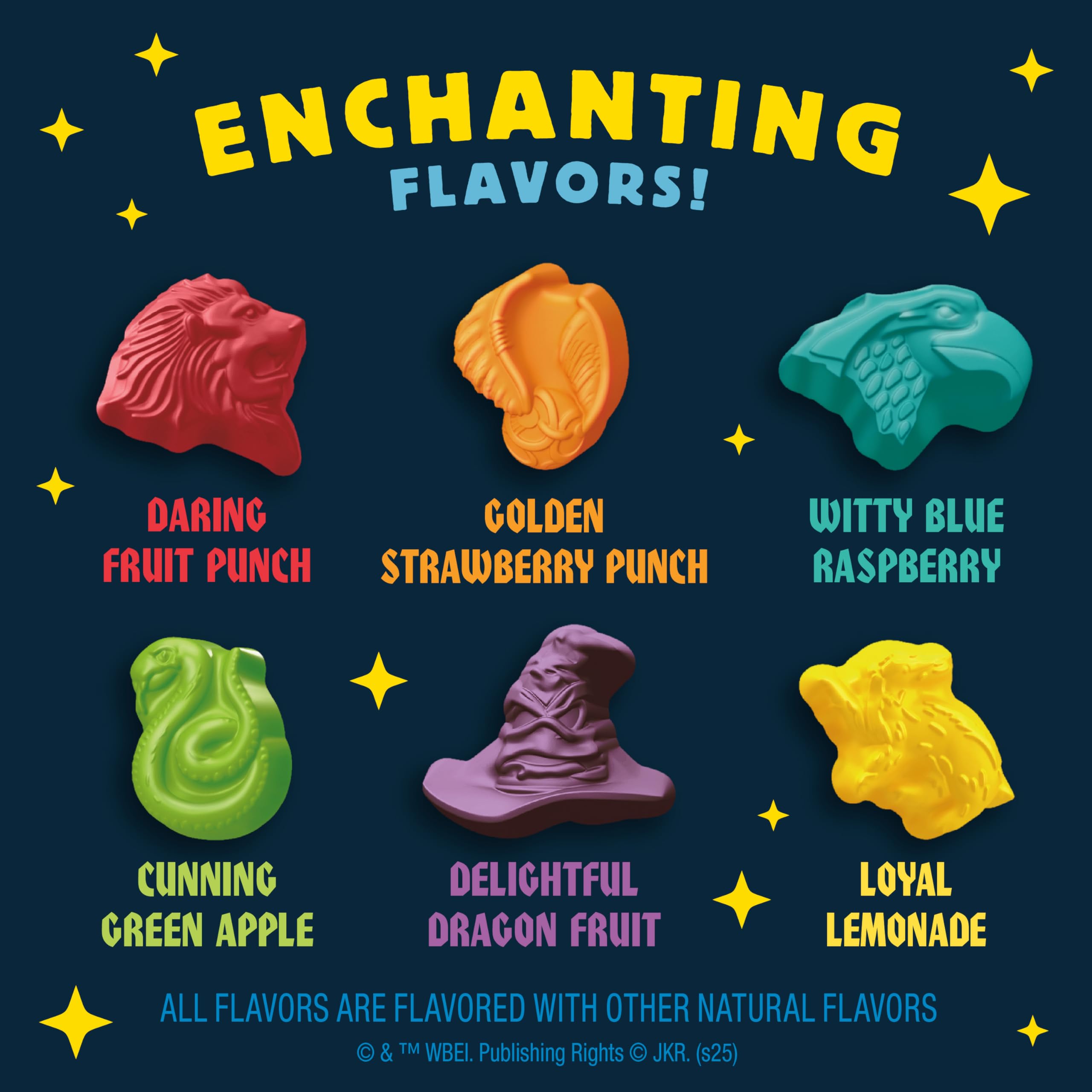 Discover the magic with Harry Potter Fruit Flavored Snacks. Bursting with fruity taste, these fun gummy snacks are shaped like the house symbols, sorting hat, and golden snitch. From Loyal Lemonade to Daring Fruit Punch, every witch and wizard can enjoy a medley of flavors. These gluten free snacks contain no colors from artificial sources and are an excellent source of vitamin C. A great treat for parties and goodie bags, or a sweet addition to your road trip. Add a little magic to your every day by testing your Harry Potter Hogwarts knowledge with trivia inside the box. Pop these into your pantry and enjoy a quick, fat free snack full of fruity flavor.