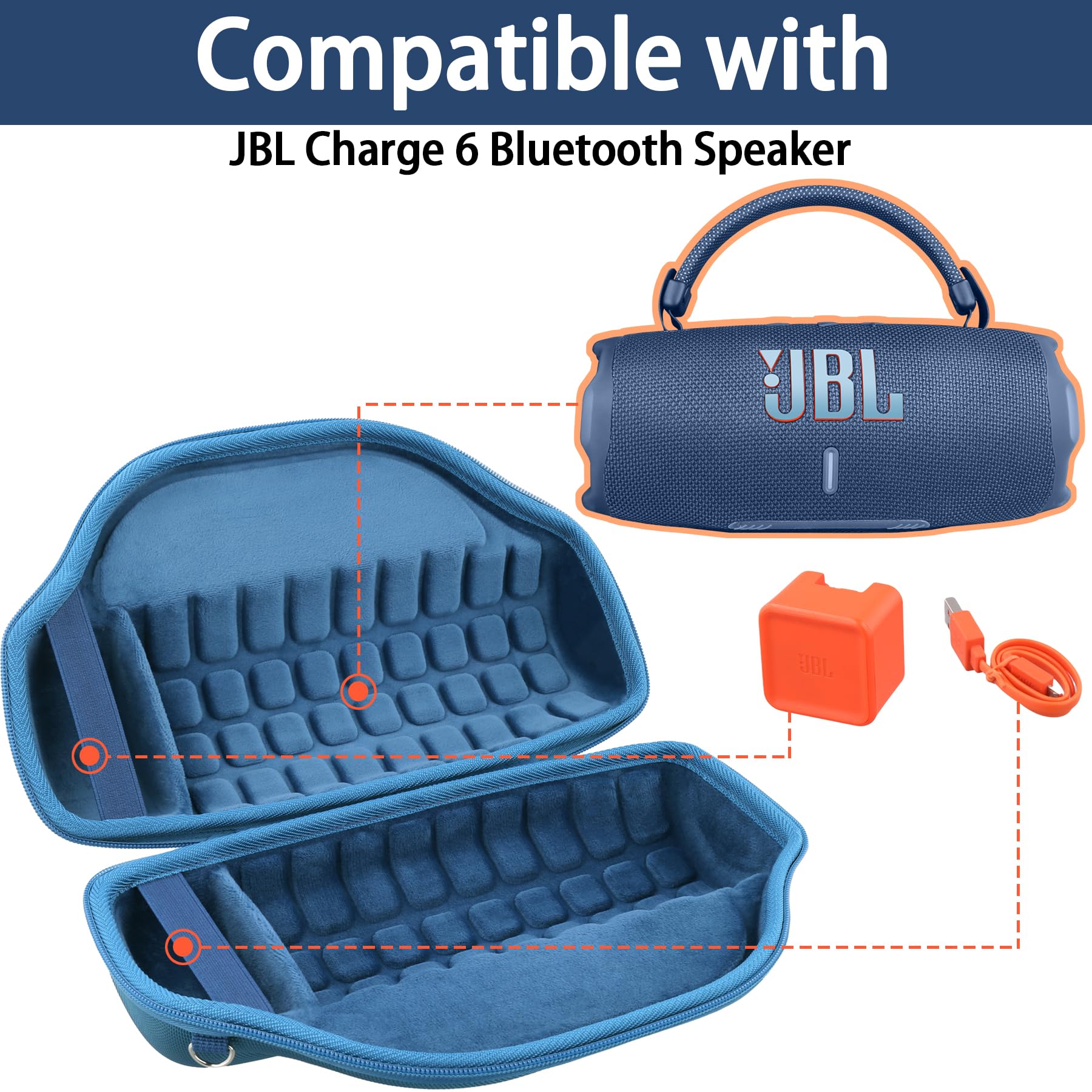 Please note that this product is a hard CASE ONLY (Hard Case + Shoulder Strap). bluetooth speakers Charge 6 and speaker Charge 6 accessories are not included. The case is designed specifically to fit your Charge 6 portable bluetooth speaker snugly, providing secure storage and protection. This case is compatible with Charge 6 speaker. Please ensure that the model of your Charge wireless bluetooth speaker match the inner size of the case for a proper fit.