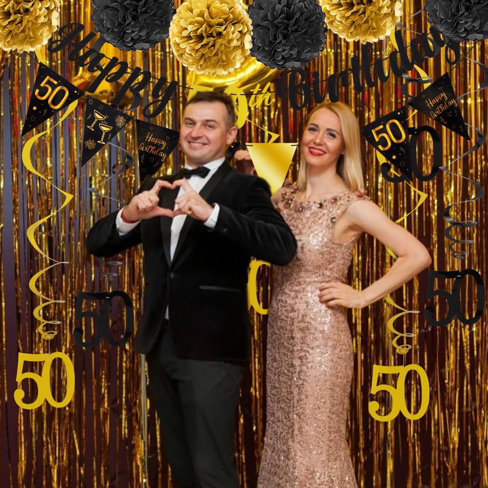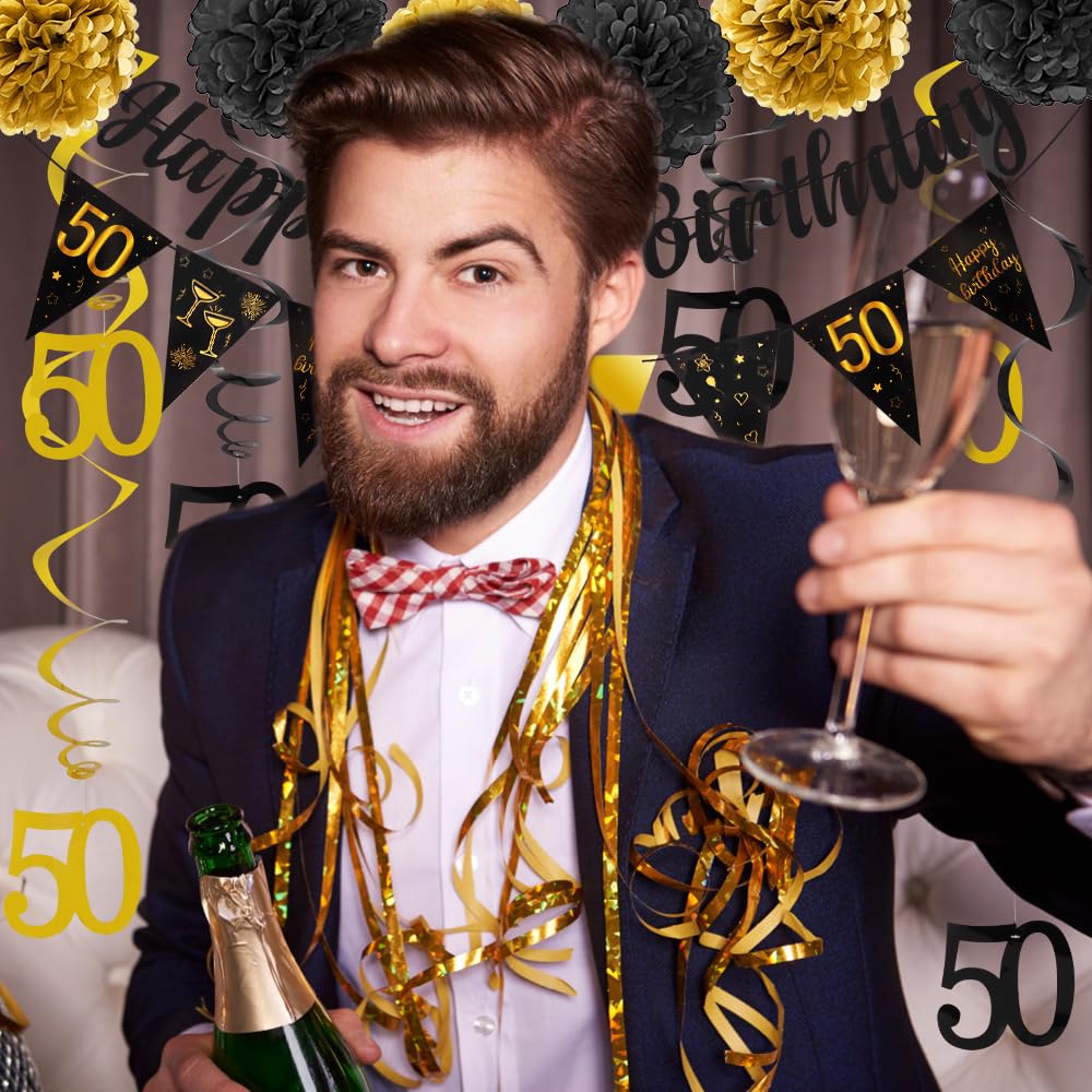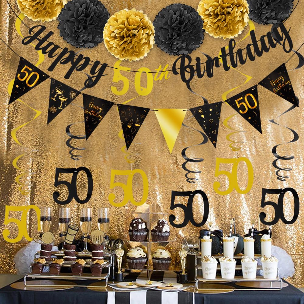 Celebrate in Style with Happy 50th Birthday Decorations: Make your loved one's 50th birthday a memorable occasion with our stunning decorations. Featuring a black and gold theme, our decorations add elegance and sophistication to any party setting.