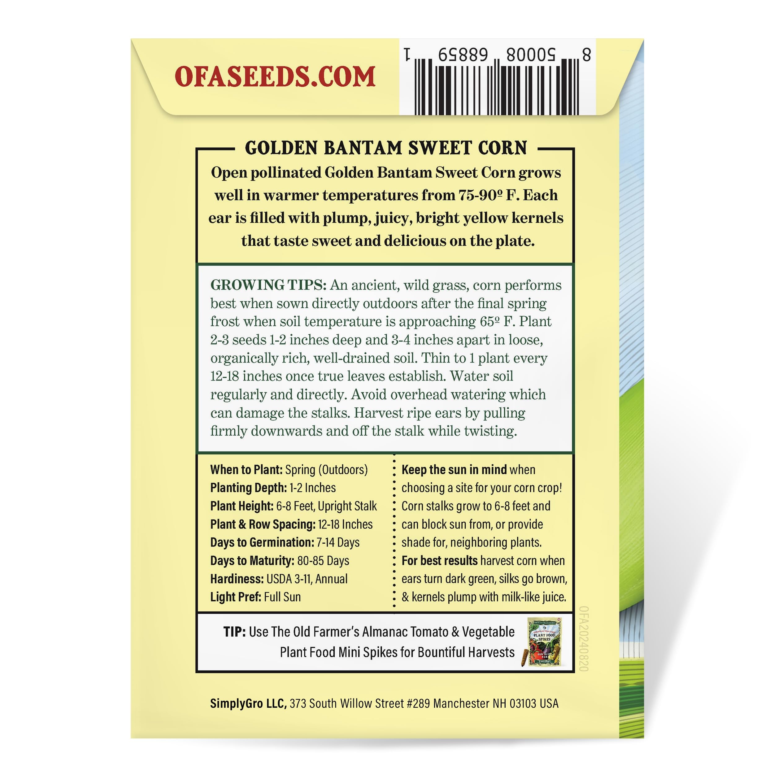 Zea mays - Open pollinated Golden Bantam Sweet Corn grows well in warmer temperatures from 75-90F. Each ear is filled with plump, juicy, bright yellow kernels that taste sweet and delicious on the plate.