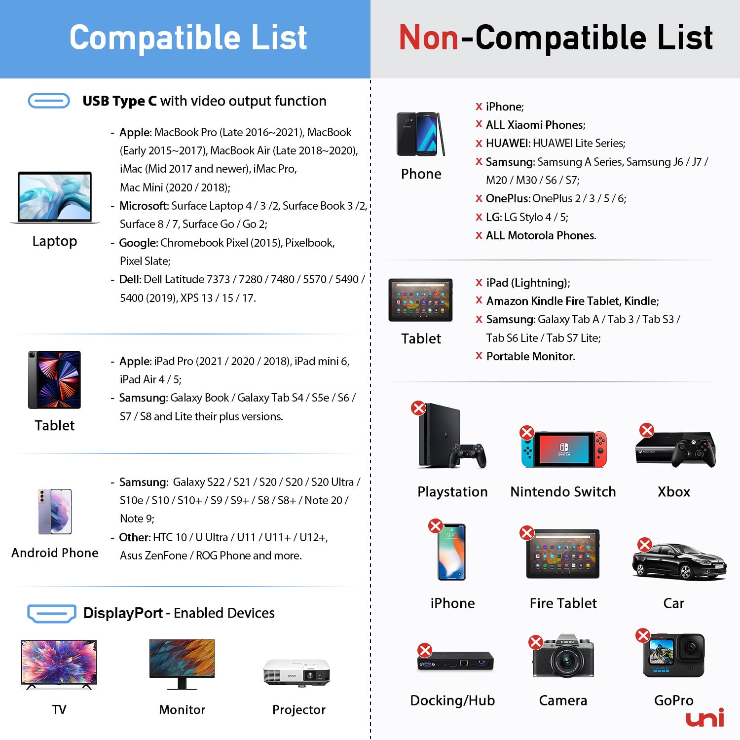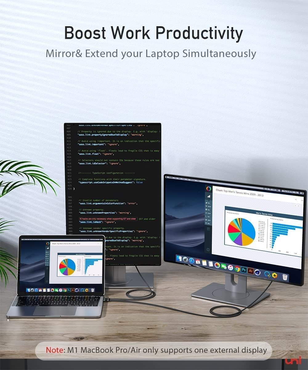 【Wide Compatibility】It is compatible with laptops and Android smartphones equipped with USB-C ports supporting DisplayPort Alternate Mode (Video function enabled). Compatible with MacBook Pro (Early 2016 and newer), iMac 2021/2020/2019/2018/2017, Mac Mini 2020/2018, iPad Pro 2021/2020/2018, Dell XPS 17/15/13, Surface Book 3/2, Pixelbook, Lenovo Yoga 920, Samsung Galaxy S22/21/20/10/9/8, Note20/10/9/8, Razer Blade, Intel NUC Skull Canyon, Pixel Slate, and many others (If you are not sure, please feel free to let us know, we are very glad to help you to check.)