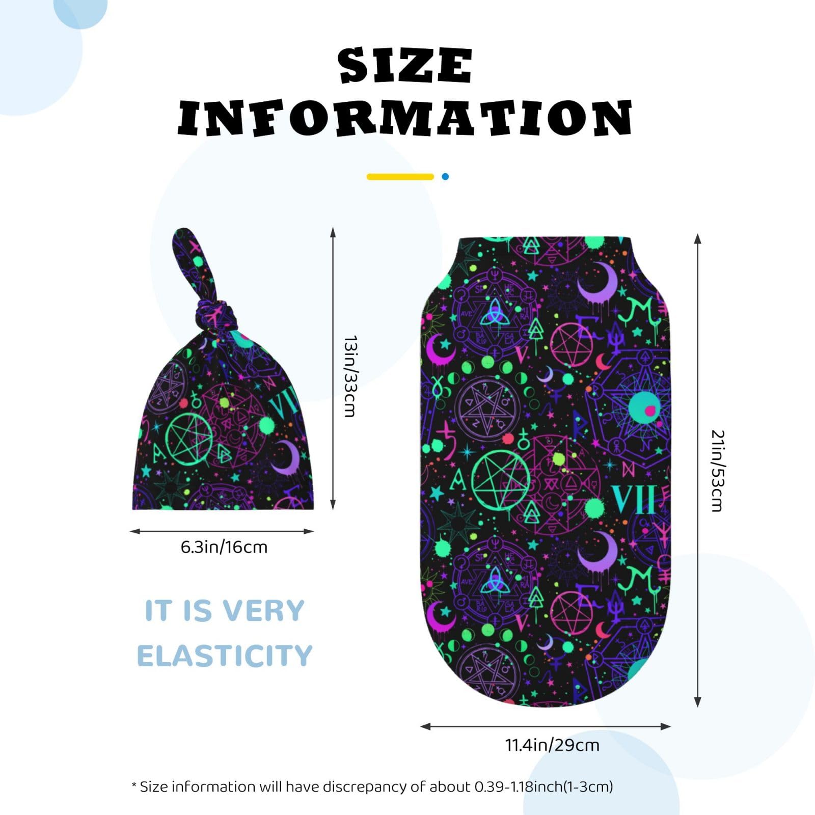 Size:1pcs Baby Swaddle Blanket Is 11.4*21 In, 1pcs Matching Hat Is 6.3*13 In. Suitable For Unisex Babies Aged 0-6 Months.