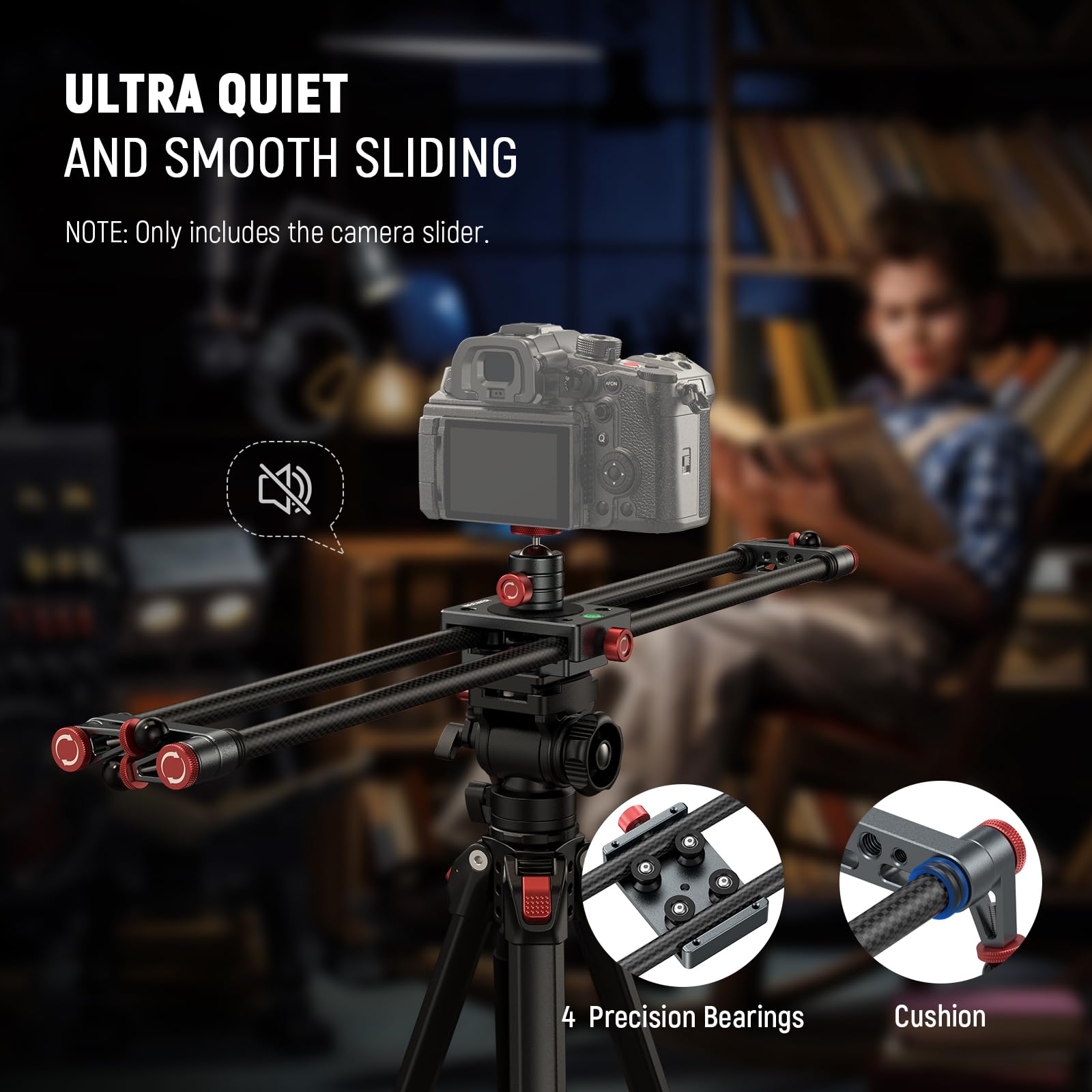 【Lightweight & Portable】 Lightweight at 23.3oz/660g, this camera dolly slider adds no bulk to your luggage, with a carrying bag for easy transport and storage, perfect for outdoor photography