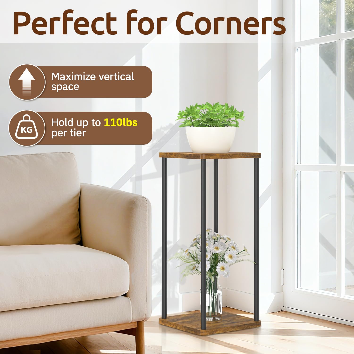 [Perfect for Corners & Tall Plants!] Decorative plant stand's sleek, upright design fits seamlessly into corners, maximizing vertical space while providing ample height to accommodate taller plants. ensuring your plants have the space they need to grow healthy and thrive. With a unique design, this plant pedestal indoor can be assembled at two different heights—13.7in or28in—to fit your space and style room.