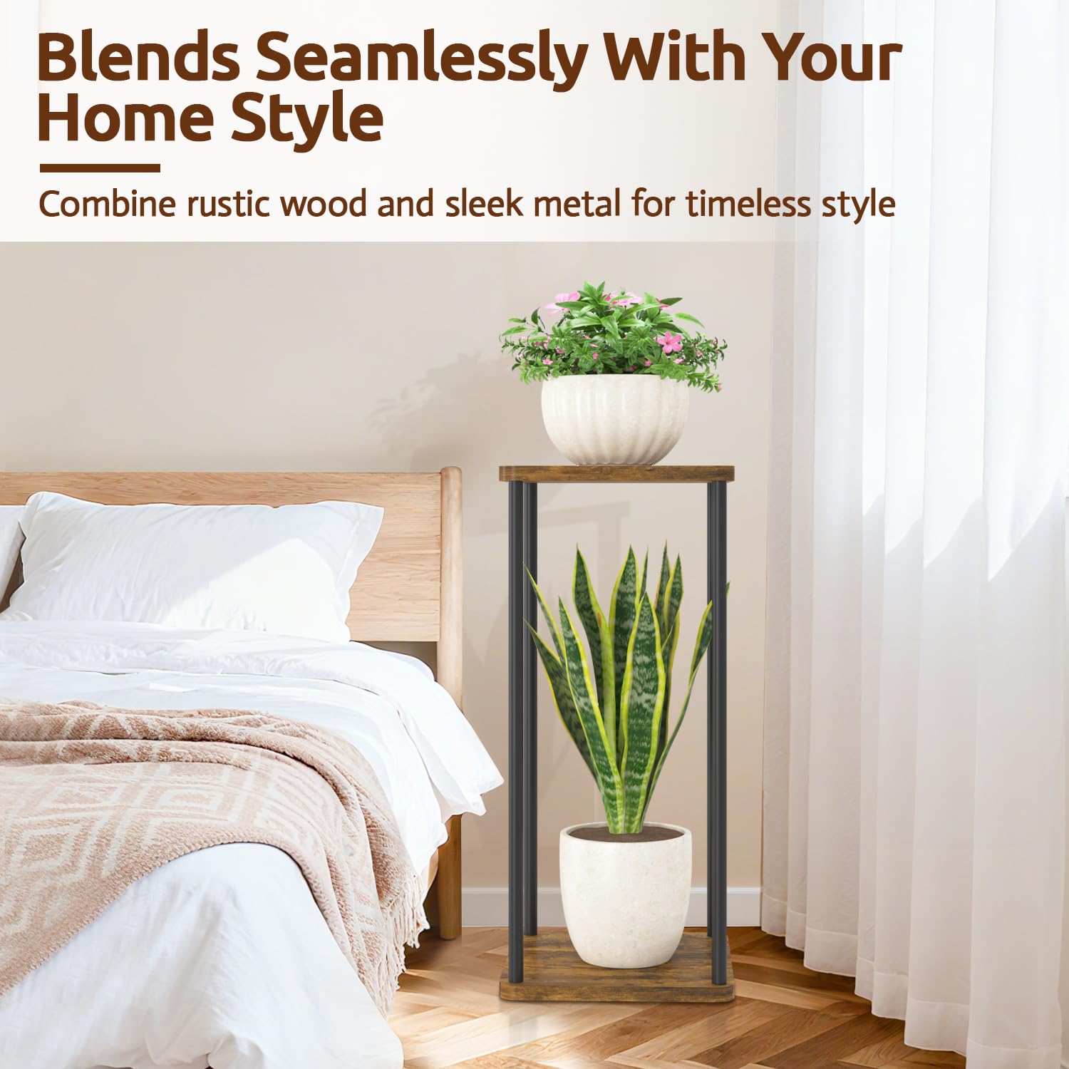 [Minimalist Display, Maximum Impact] More than a vintage plant stand, it’s a versatile display piece. The clean lines of sleek black iron paired with rustic wood create a modern, minimalist look that fits seamlessly into any space. Use it to showcase plants, art, books, or your favorite décor, and turn your home into a gallery of style.