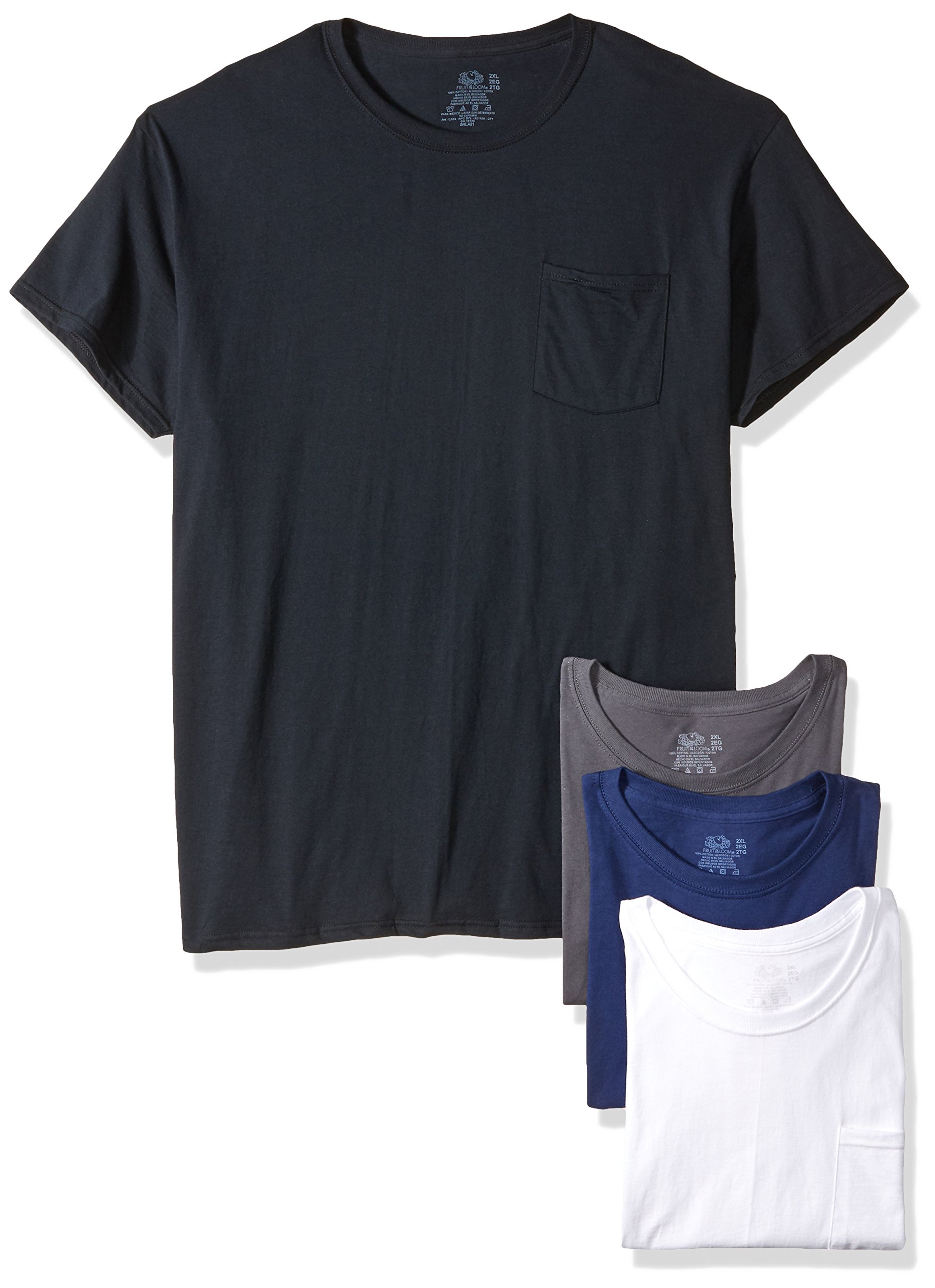 Description Our men's pocket t-shirts are a casual wardrobe staple that you are going to love to live in. Featuring a tag free collar, super soft cotton and reinforced pocket, the Fruit of the Loom Men's Pocket T-Shirts are designed for comfort and made to last. Live your life more comfortably with Fruit of the Loom Men's Pocket T-Shirt. Each shirt wicks away moisture so you can stay cool and dry.