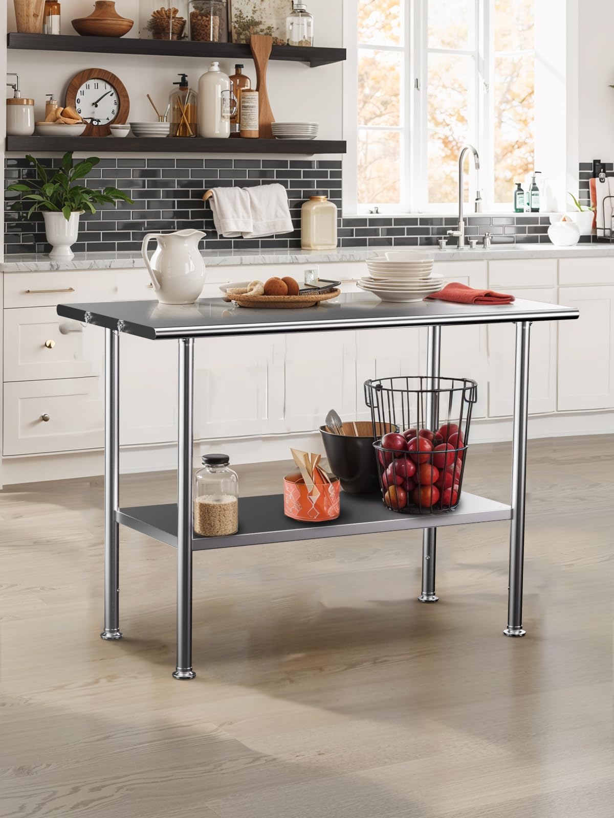 【Versatile Applications】This stainless steel table is perfect for both commercial and residential settings, including homes, restaurants, hotels, warehouses, workshops, kitchens, garages, gardens, and clinics. It serves as an ideal workbench for food prep, cooking, or storage purposes.