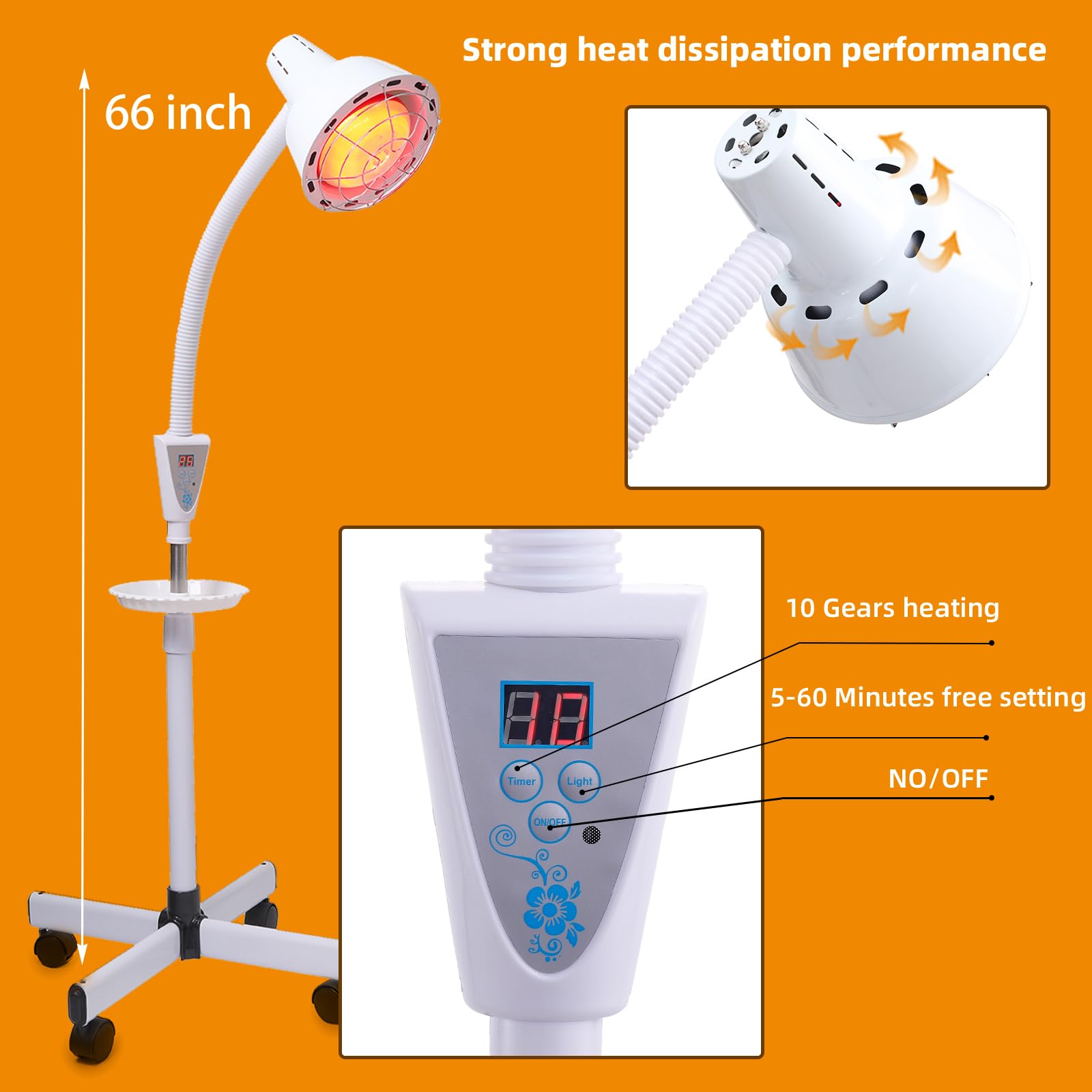 275W INFRARED HEAT LAMP,Infrared light using 275W high-power bulb,temperature can be adjusted freely.360 degree rotation light head, adjusting arms can adjust the angle freely,Floor stand design with 4 movable omnidirectional wheels.