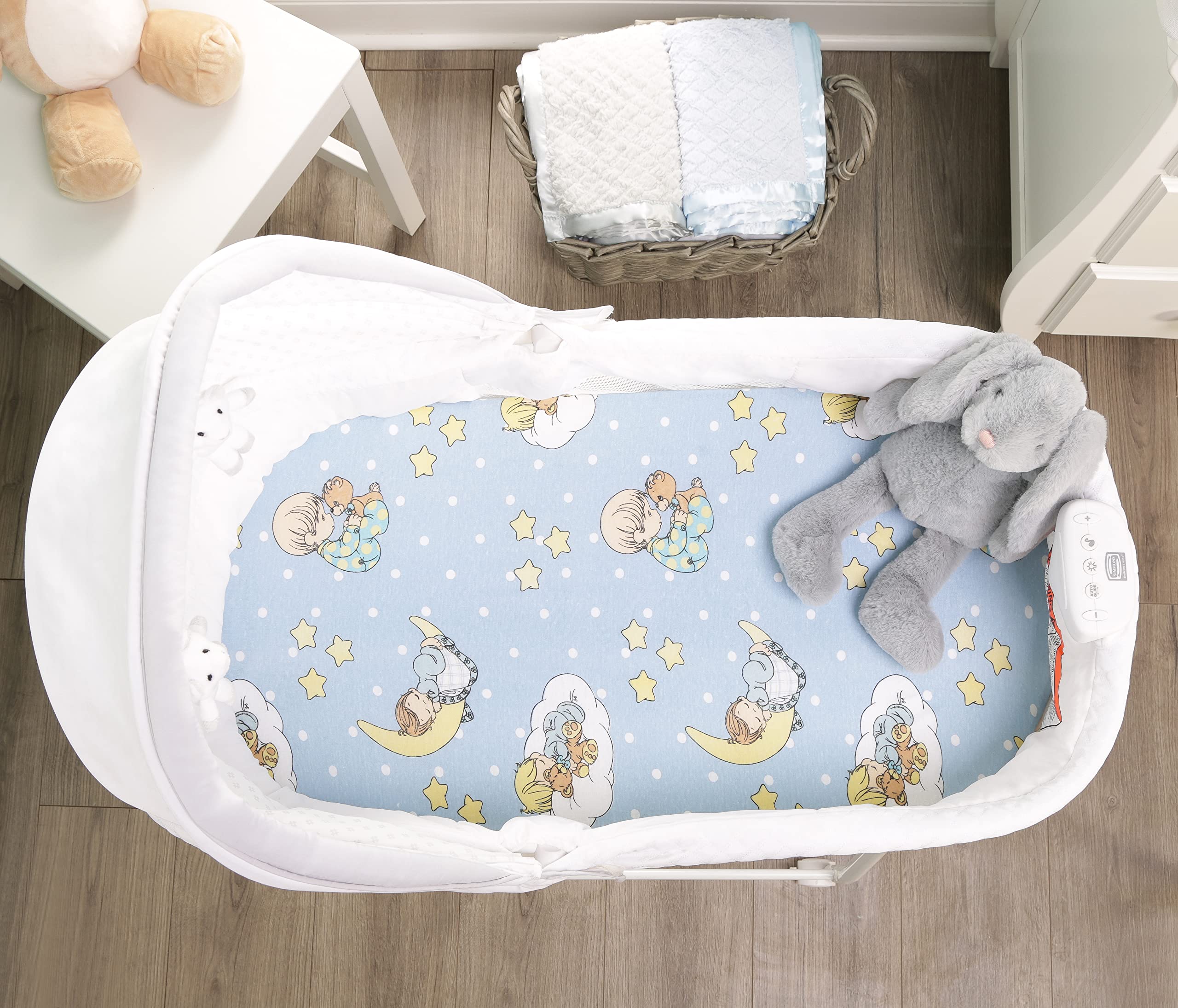 COMFY AND COZY BASSINET SHEETS: Made with 100% Jersey Knit Cotton for comfort! Not synthetic or blends as many of our competitors use, pure cotton equals a breathable and soft fabric to encourage your new bundle of joy to sleep through the night!