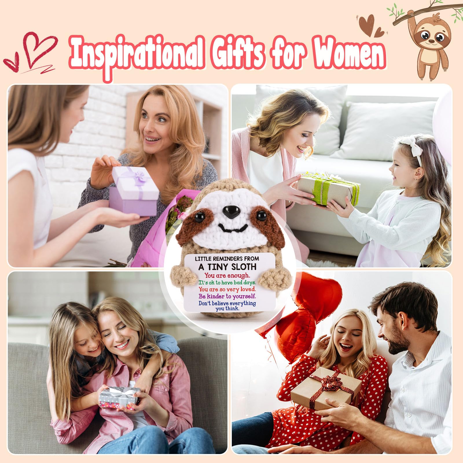 Affirmation Gift of Tiny Sloth: Perfect for birthday, graduation, Mother’s Day, Valentine’s Day, Christmas, or simply as a thoughtful surprise, this mini sloth serves as a sweet affirmation of care and belief in the power of positive. It's a unique gift that can accompany anyone through tough times and serve as a gentle reminder of their strength and excellence.
