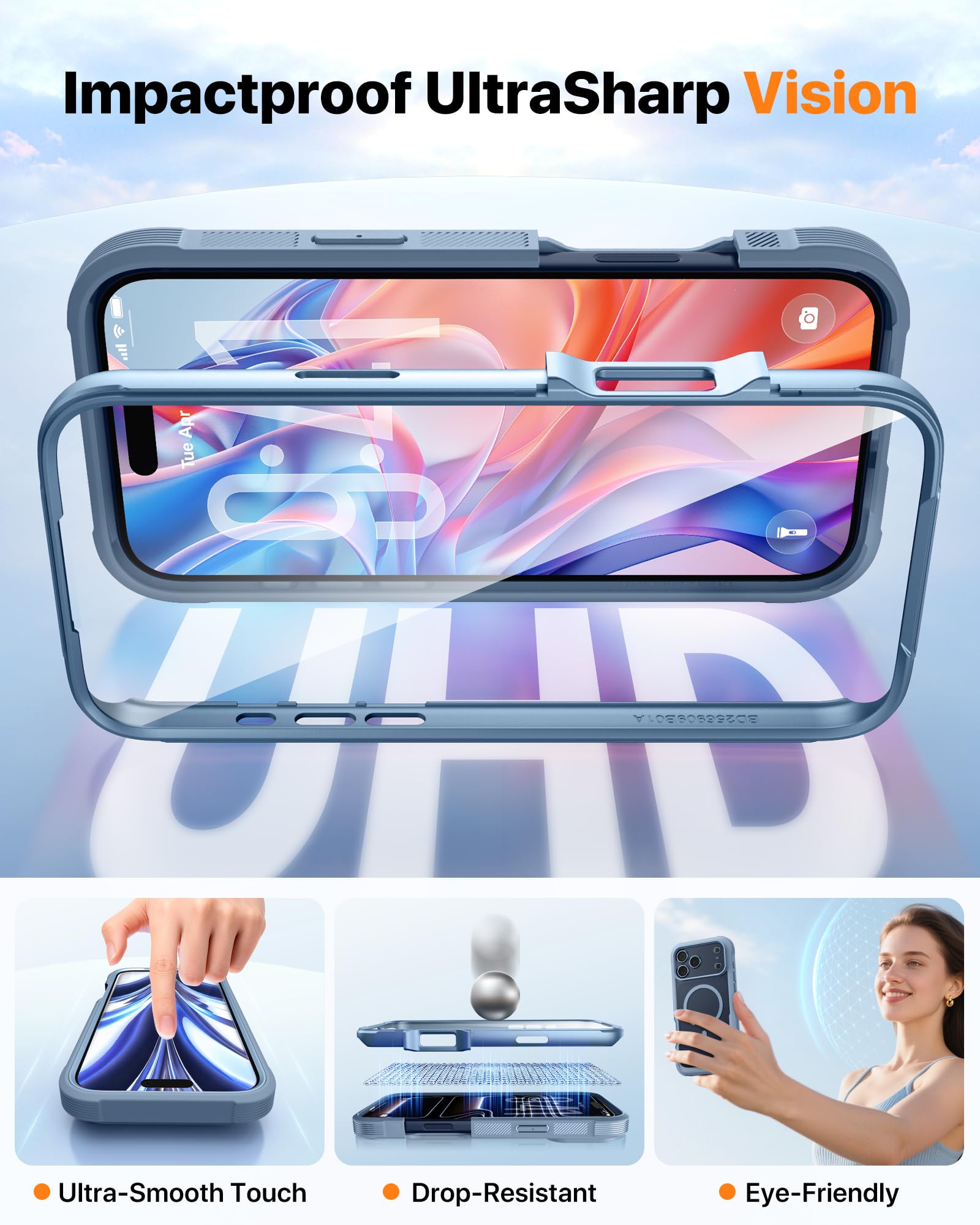 【Built-in screen protector】Diaclara clear designed for iphone 17 pro max case with built-in touch sensitive and anti-scratch screen protector, protect the fragile glass from scratches and cracks.