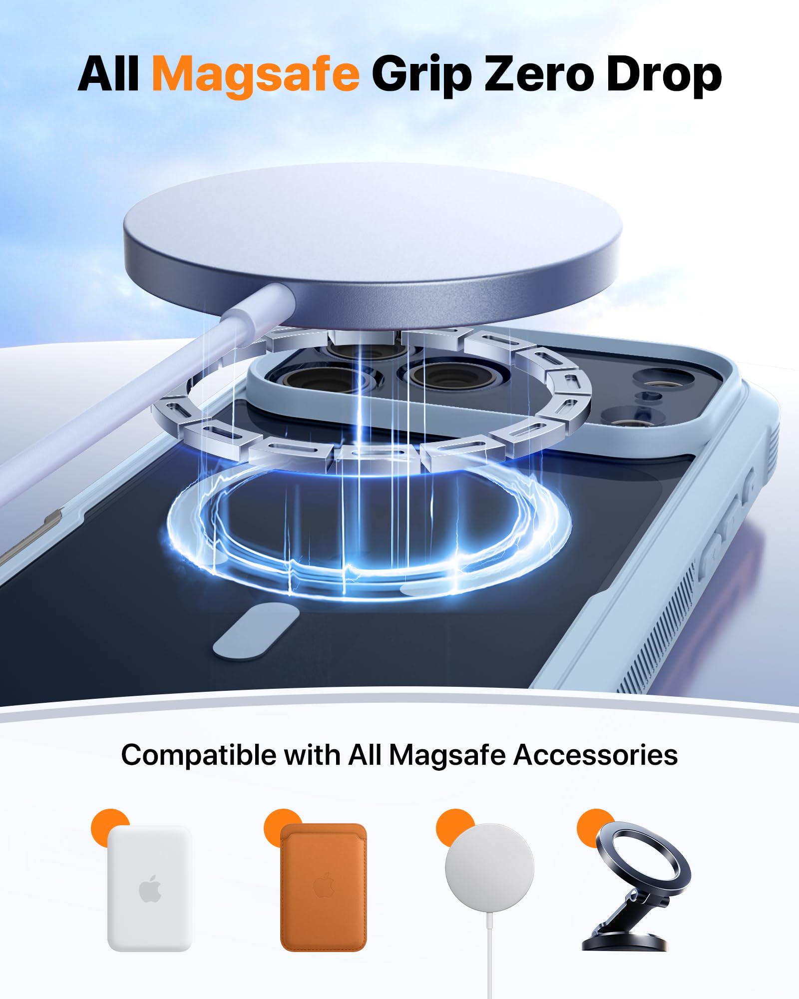 【Fit All Magnet Accessories】 Built in 2025 upgraded generation magnet ring, locking and compatible with magsafe accessories, wireless charging is faster, easier, and safer. Works 100% with wireless charging pad, don't need to remove the case.