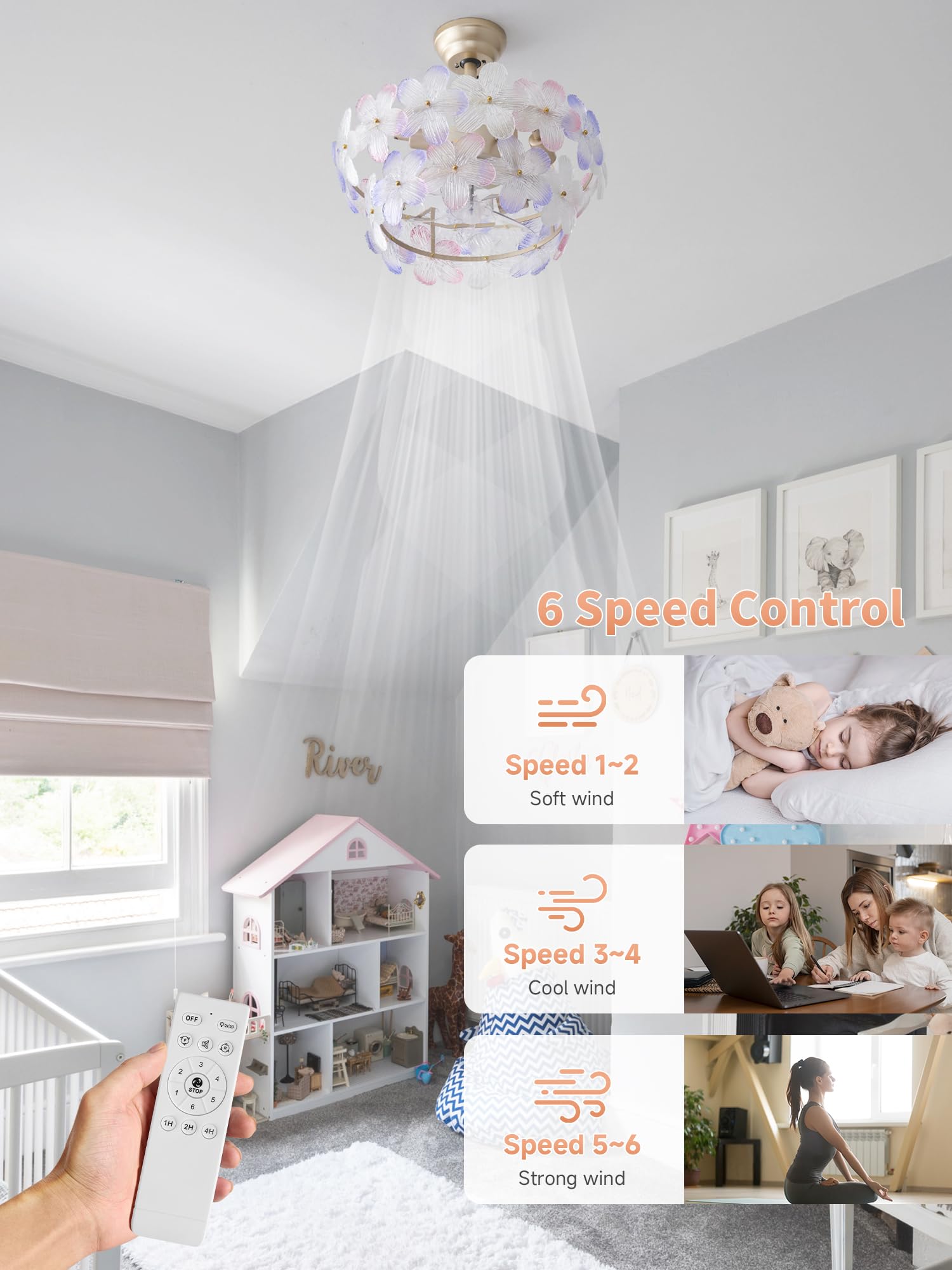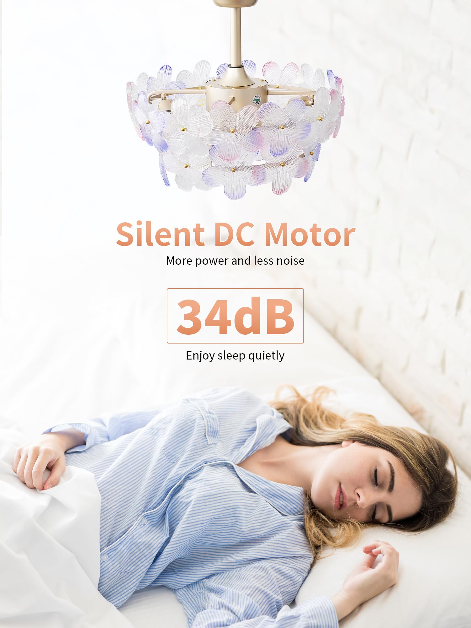 Quiet Night: End the torture of noise and enjoy a peaceful dream! Our gold crystal flower ceiling fans with lights is as quiet as the stars in the night sky when it is in operation, allowing you to easily fall into a sweet sleep. You can set the gold ceiling fan with light to automatically turn off after 1, 2 or 4 hours, and its convenient timer function ensures that the gold crystal ceiling fan with light will automatically turn off at the right time while you are sleeping, giving you complete peace of mind.