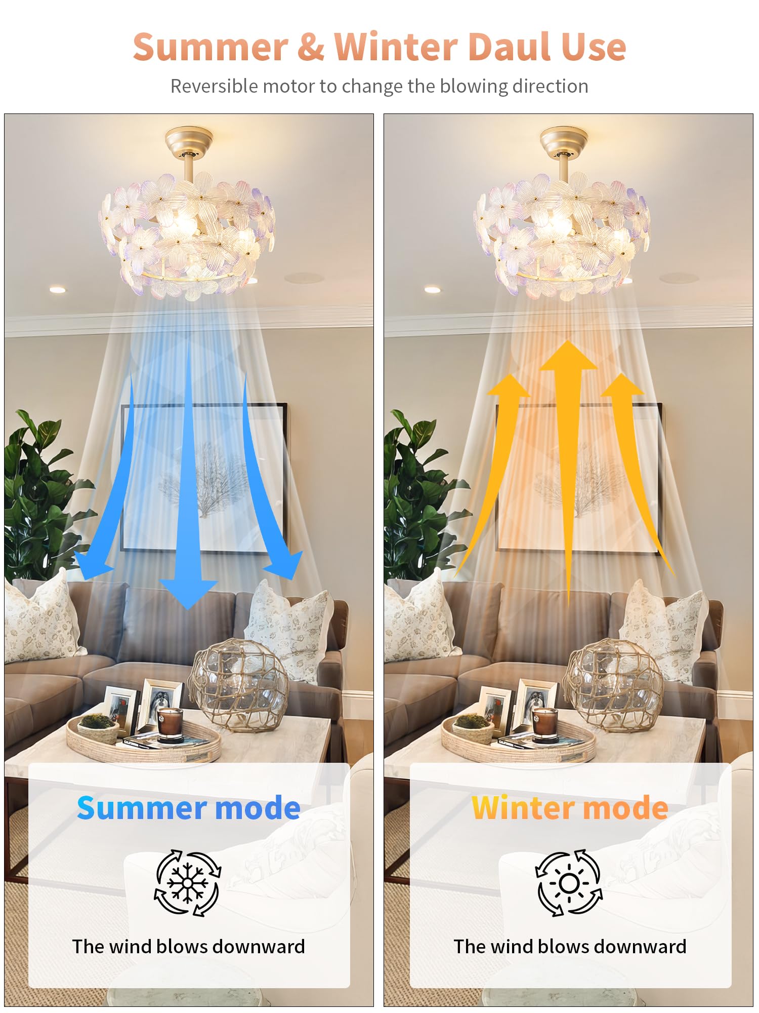 Crystal Flower Design: Bring the beauty and vitality of flowers to your home with our gold crystal flower ceiling fans with lights! This distinctive enclosed gold ceiling fan with light, surrounded by a beautiful crystal flower design, is the perfect choice for flower lovers. Giving a modern twist to the traditional ceiling fan with light, it not only brings fresh air, but also adds a touch of romantic floral charm to your space, filling every corner with the breath of nature.