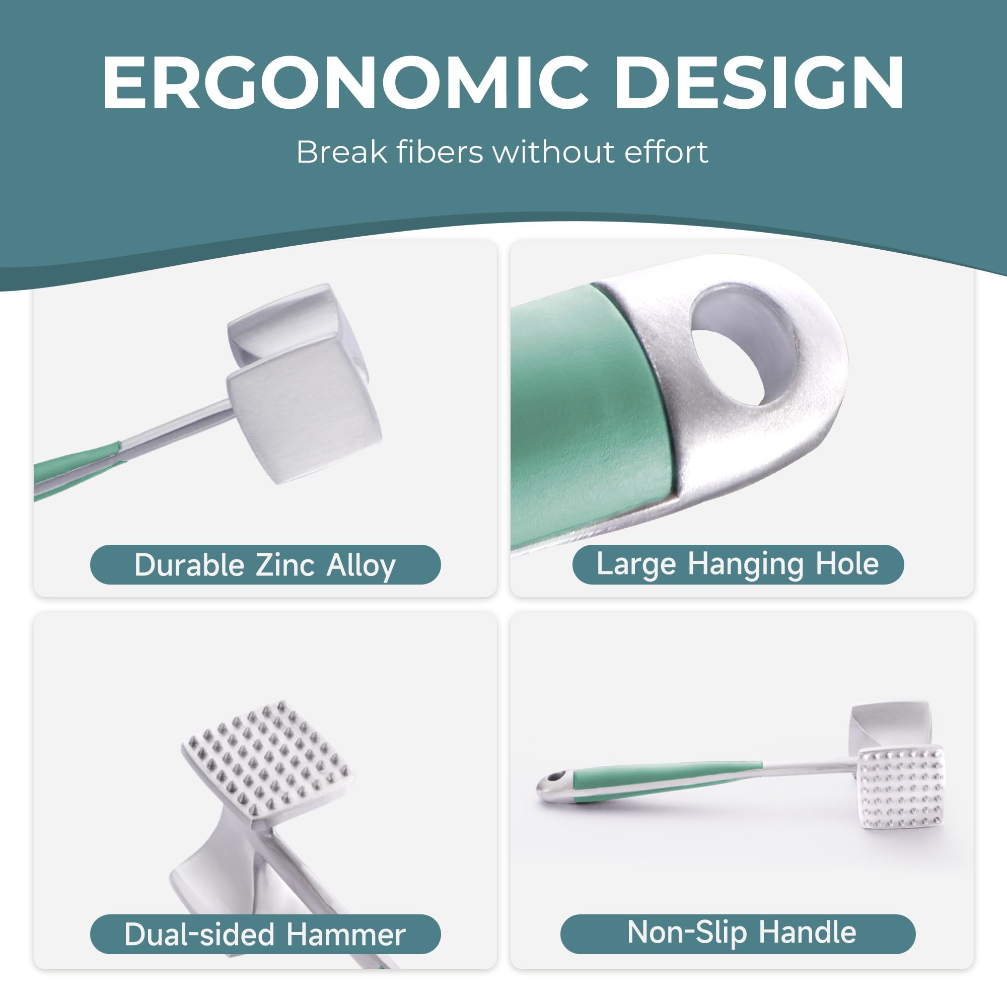 Ergonomic Design: We are always looking for a meat tenderizer with a comfortable handle that fits perfectly in your hand. This meat hammer from Kitexpert fits that bill which allows the mallet and gravity to do all the work in less time. Enjoy your cooking time!