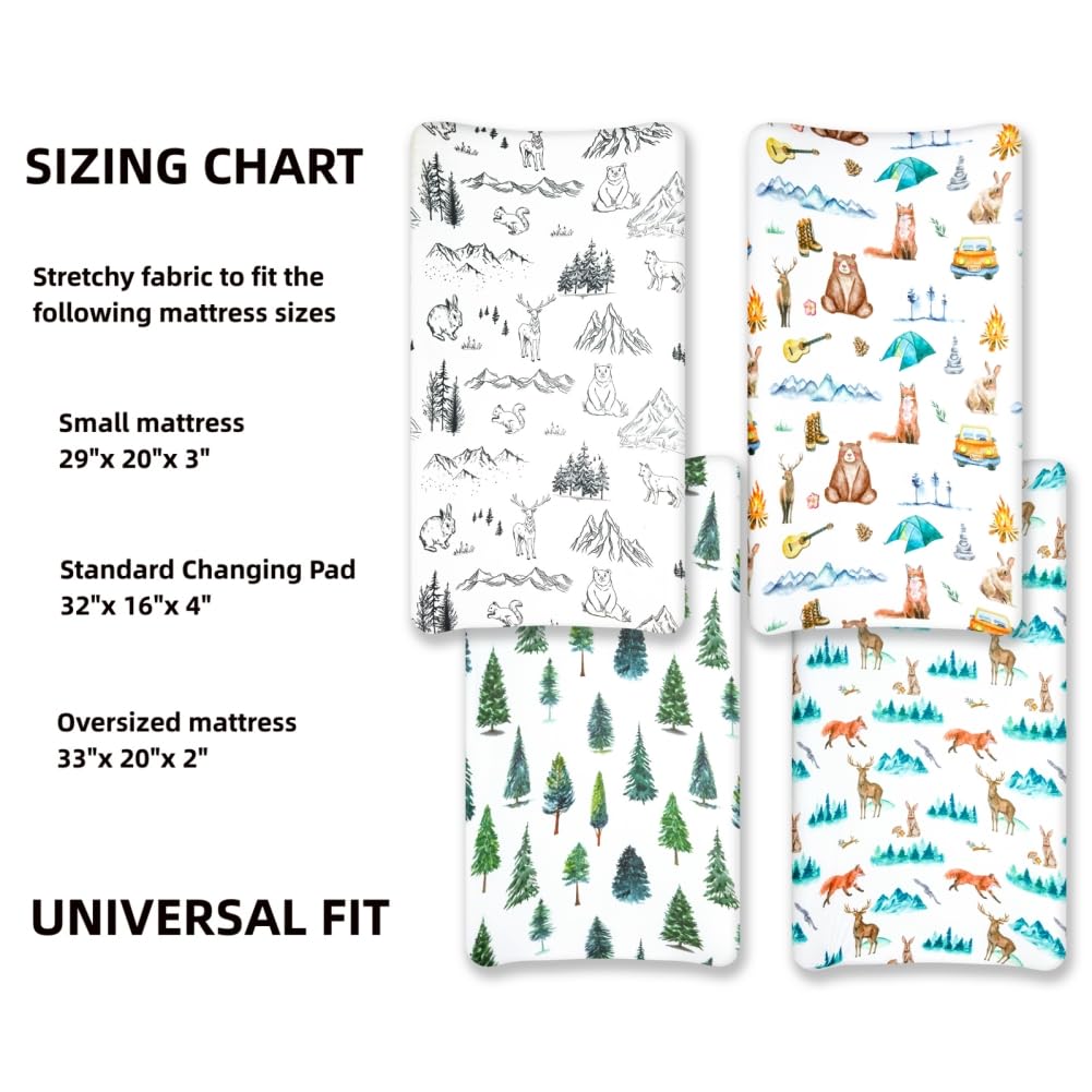 4 PACK VALUED SET: All kinds of sheets set included 4 pack woodland sheets with different patterns. Enough sheets to replaces once accidents happen. And save your money through buying 4 pack crib sheets as a set