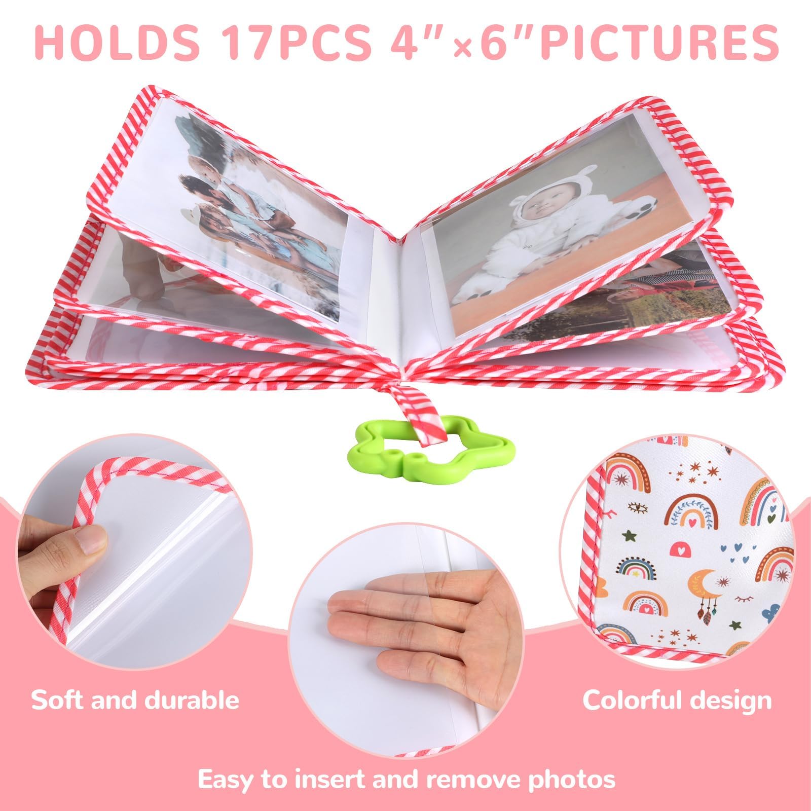 The Perfect Size and Material: The baby photo album size is about 7.1*5.5inches (18*14cm). It is made from high quality material that will not fade or break easily.This photo cloth book is soft to the touch, which gives baby a friendly feeling. It can also be used for a long time and is not easily damaged.