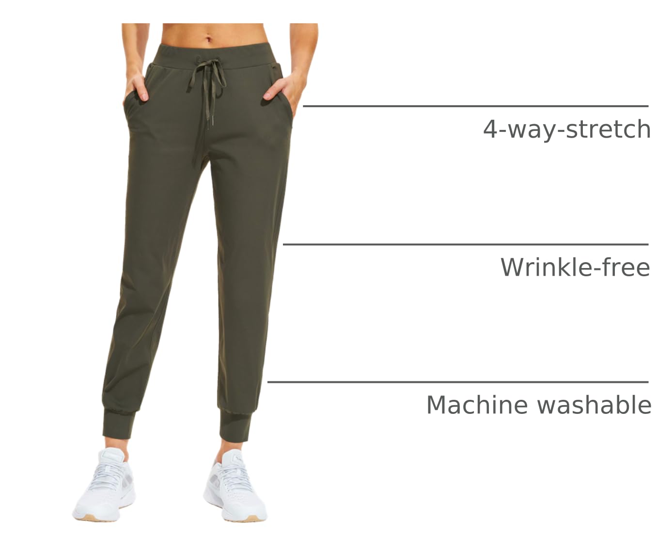 The fabric is super stretchy, Skin-Friendly, wrinkle-free and don't attract hair, the athletic joggers feature the 4-way-stretch and just like a second-layer of skin, they provide you with maximum comfort to ensure all-day active free