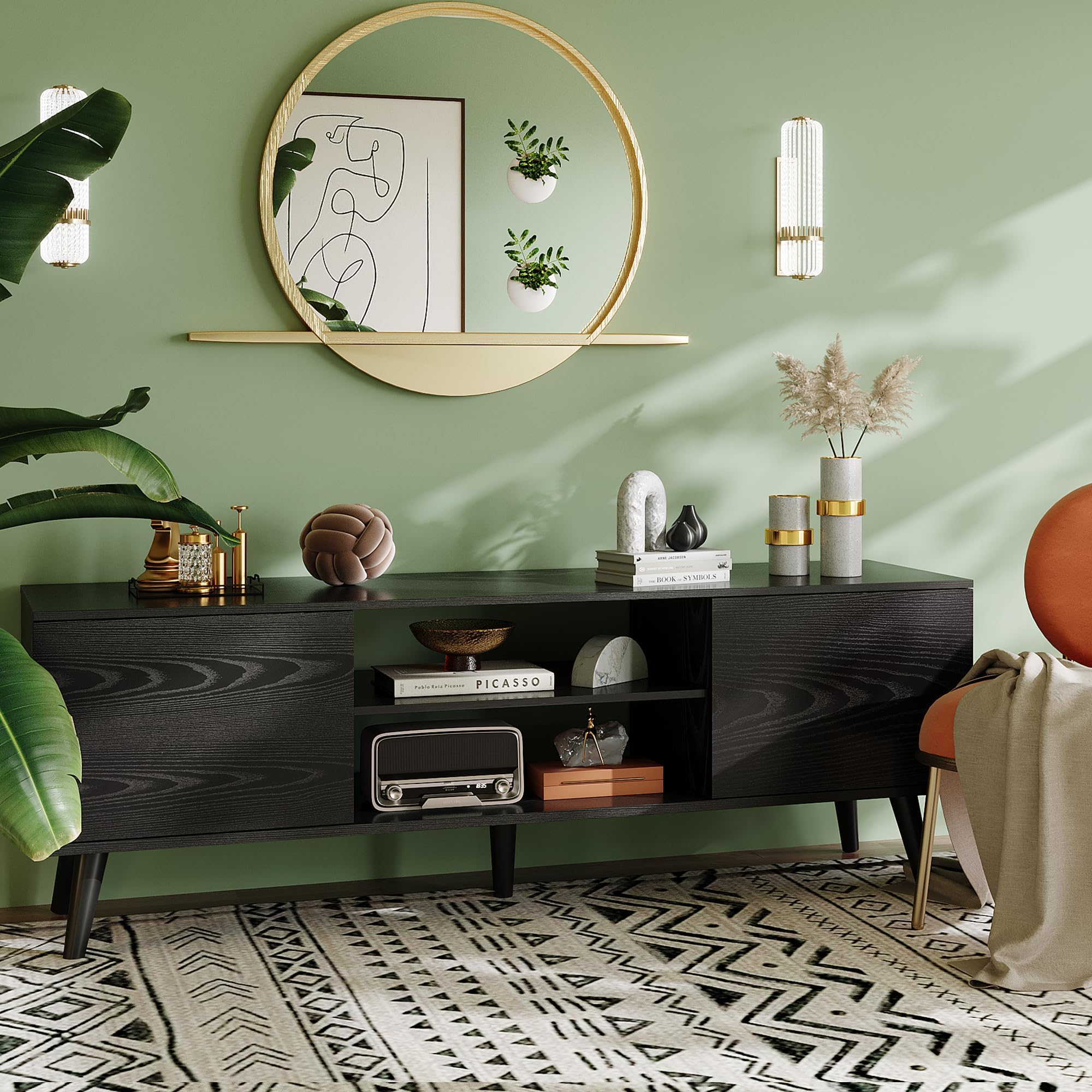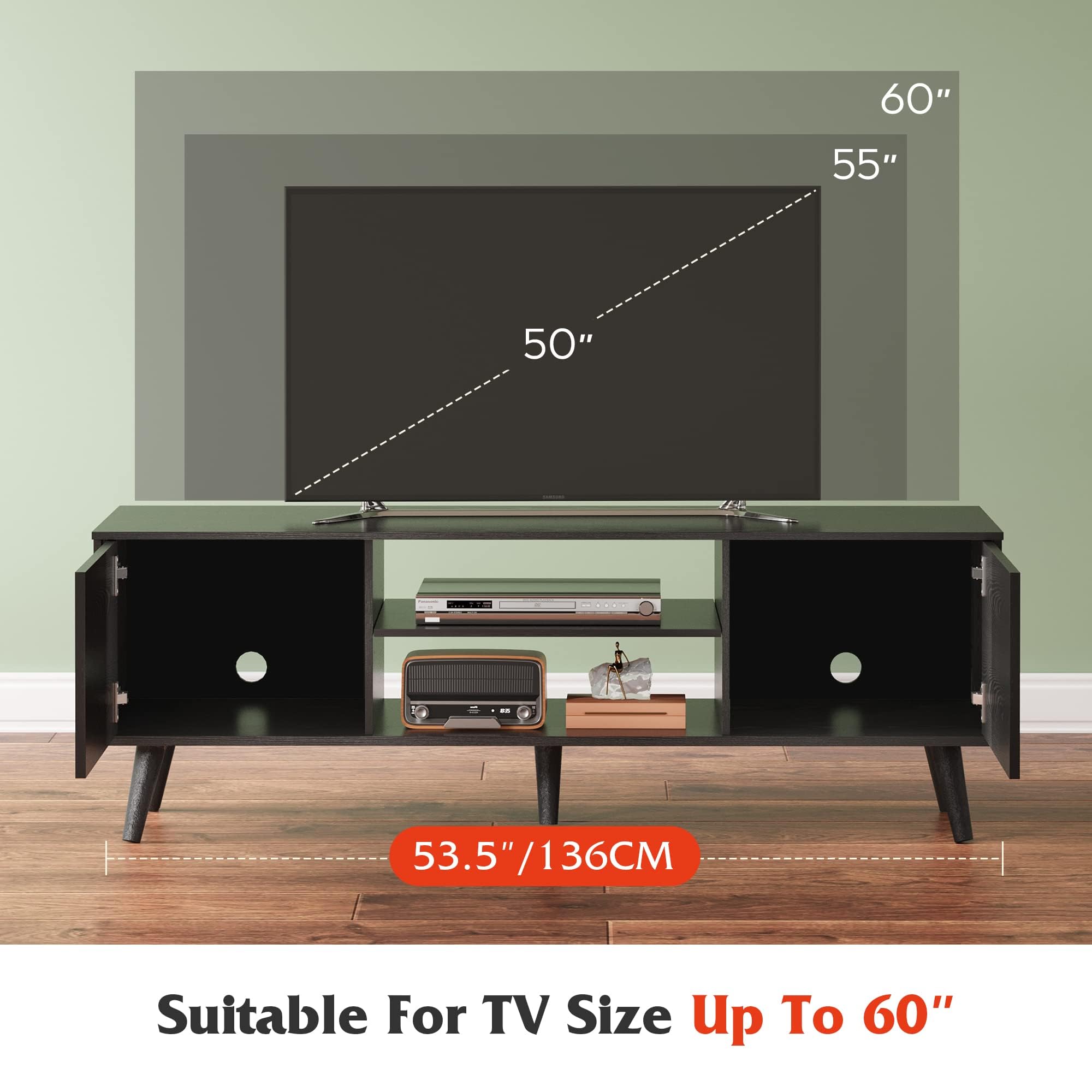 Timeless Mid-Century Modern Charm - Enhance your home with a blend of rustic aesthetics and modern durability. Perfectly sized to accommodate TVs up to 55 and 60 inches, this 54" TV cabinet features antique-inspired accents and a sturdy, stylish design. It is the ideal centerpiece to anchor your home theater for years to come.