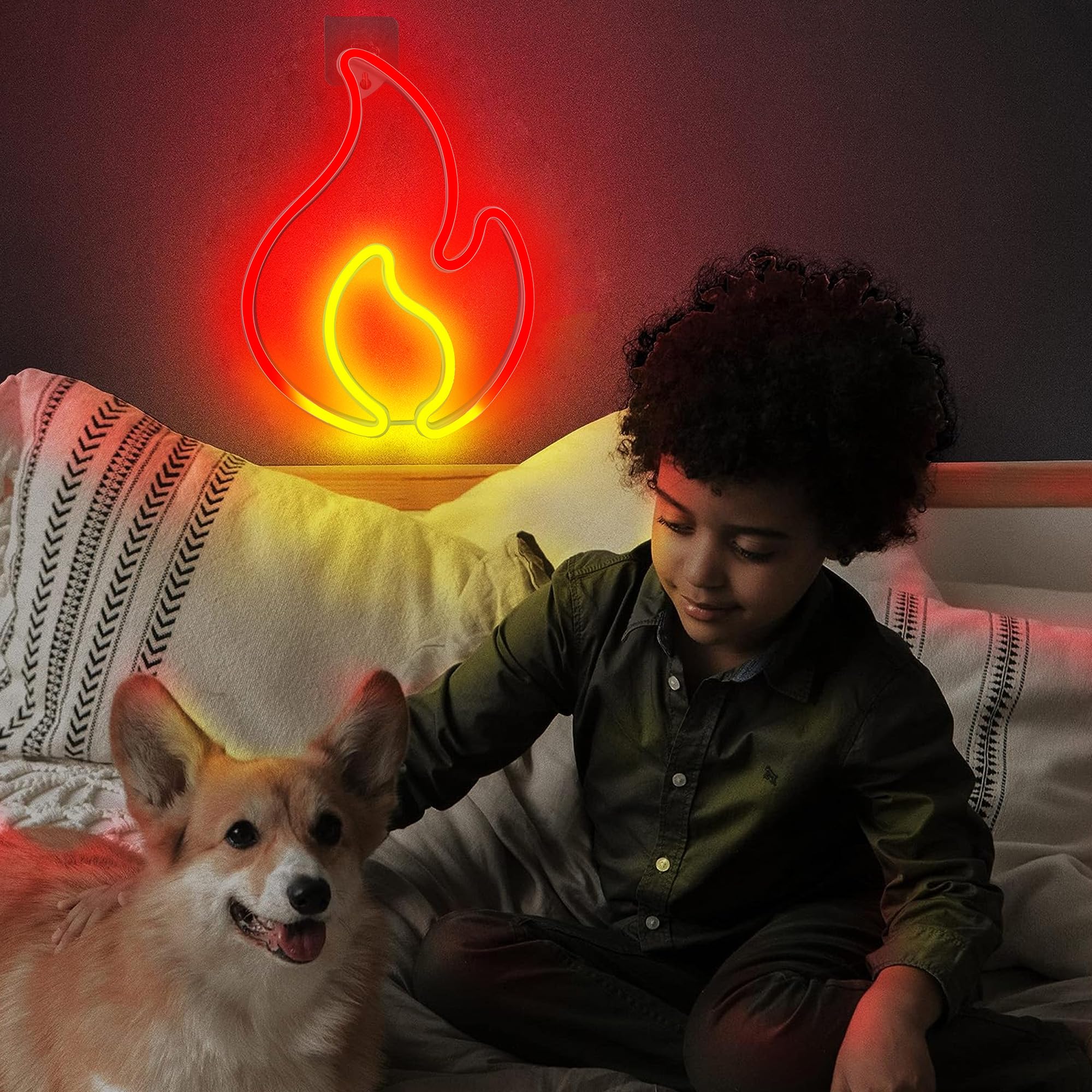 🔥【Cool Decorative Lights】The flame neon signs glows bright red and yellow when turned on, makes it eye-catching even from a distance. Could light your wall up with this flaming cool neon fire sign, it will engulf your space in a blaze of vibrant neon! We believe it can give you the luminous glow you need!