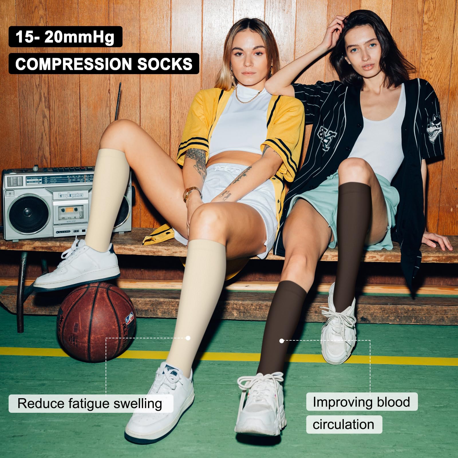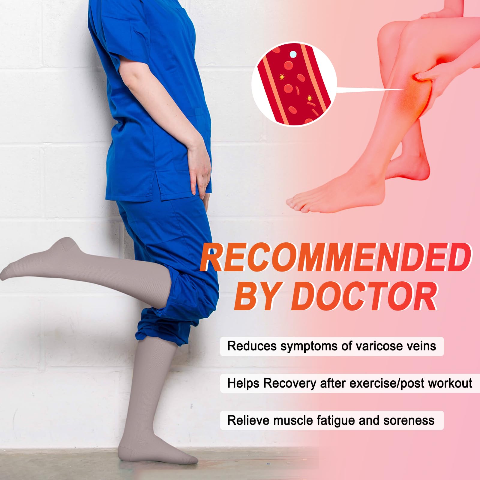 Compression for Optimal Support – These socks are engineered to provide compression that helps to reduce swelling, improve circulation, and relieve varicose veins. Made from nylon, they combine strength and flexibility, providing consistent compression throughout the day. Whether you’re recovering from a workout or standing for hours, these socks will provide immediate relief and comfort, making them perfect for both high-impact sports and long work shifts.