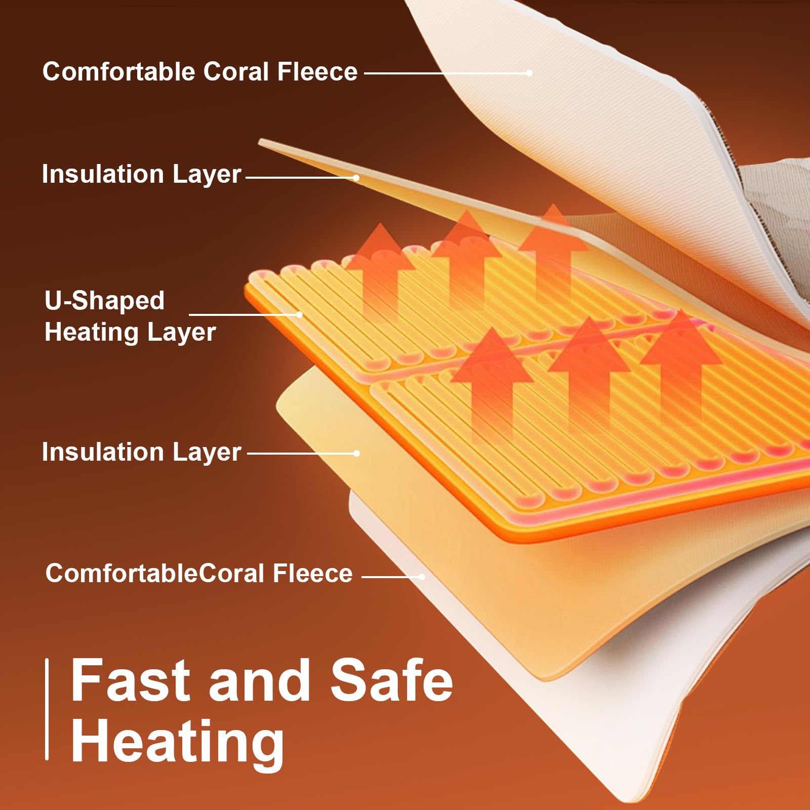 【Quick Heat-Up】No need to wait around for warmth. Our foot warmer heats up fast, delivering instant comfort from the cold. Once it hits your desired temp, it stays steady. It also has extra heating wires on the bottom for even heat distribution, keeping you cozy all winter long.