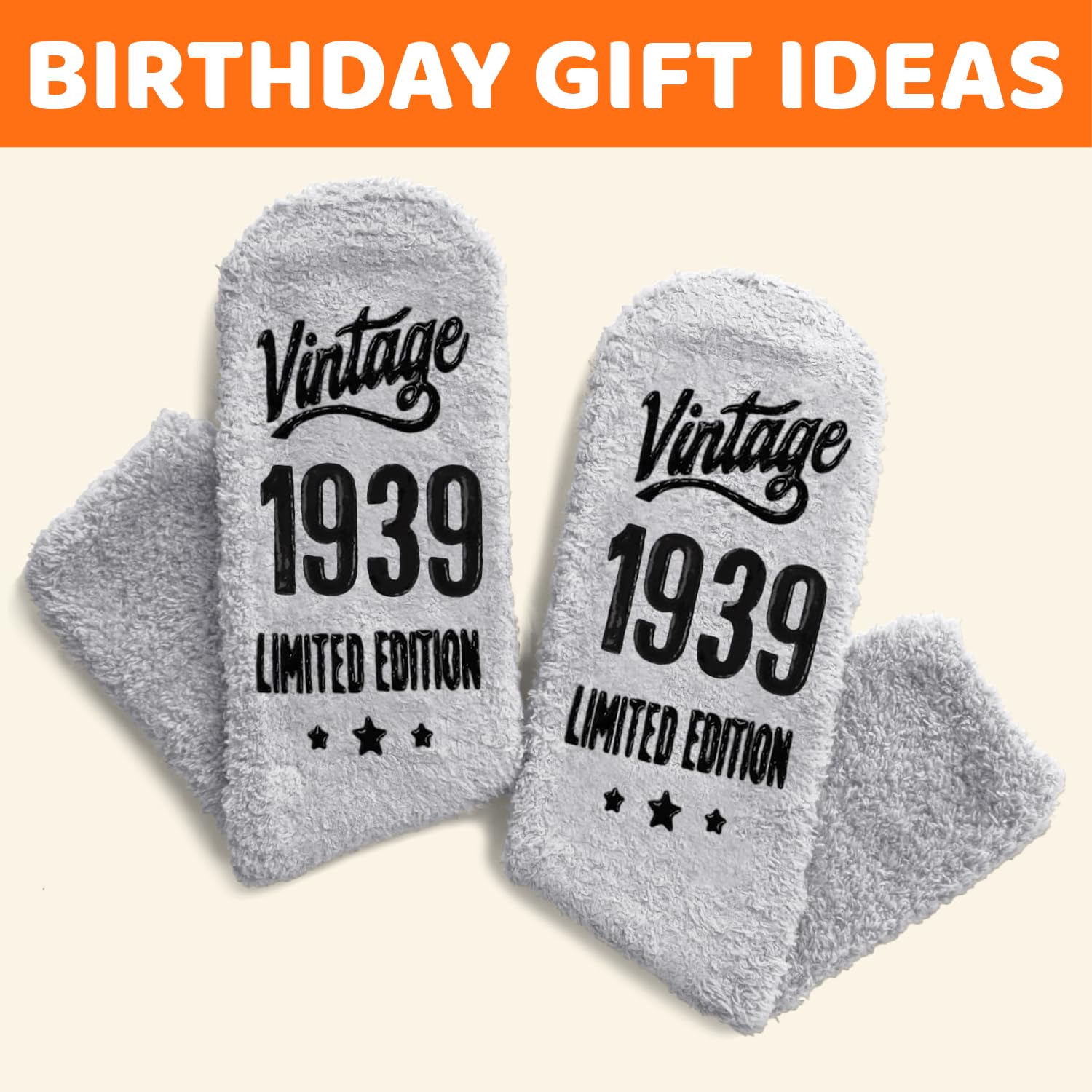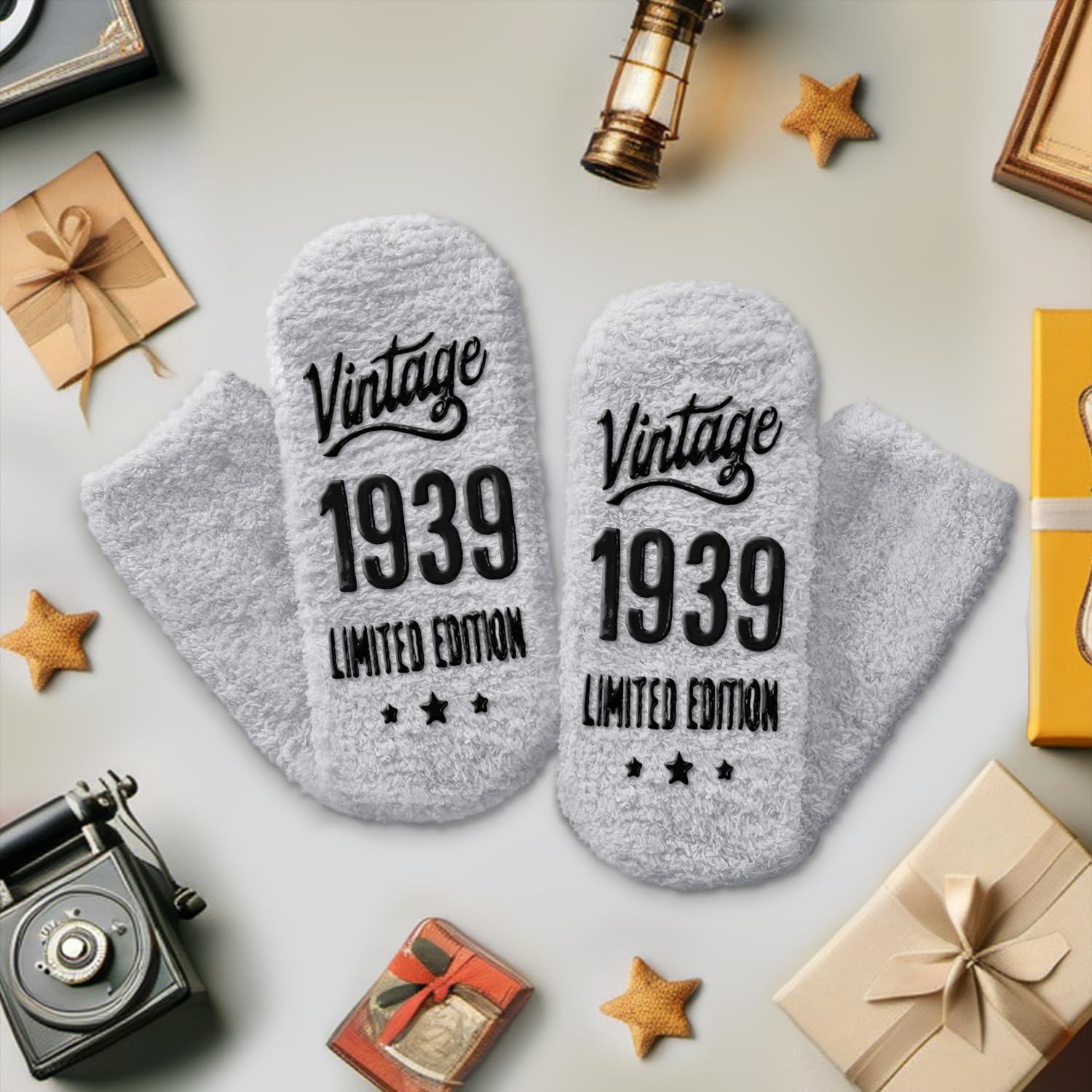 1939 BIRTHDAY GIFTS: Give him this perfect 86th birthday gift to remind him of how great he is. His smile will get even wider when he reads the words "Vintage 1939 LIMITED EDITION." Practical, emotional, and humorous, this pair of birthday socks makes a great gift if your friend or family member was born in 1939!