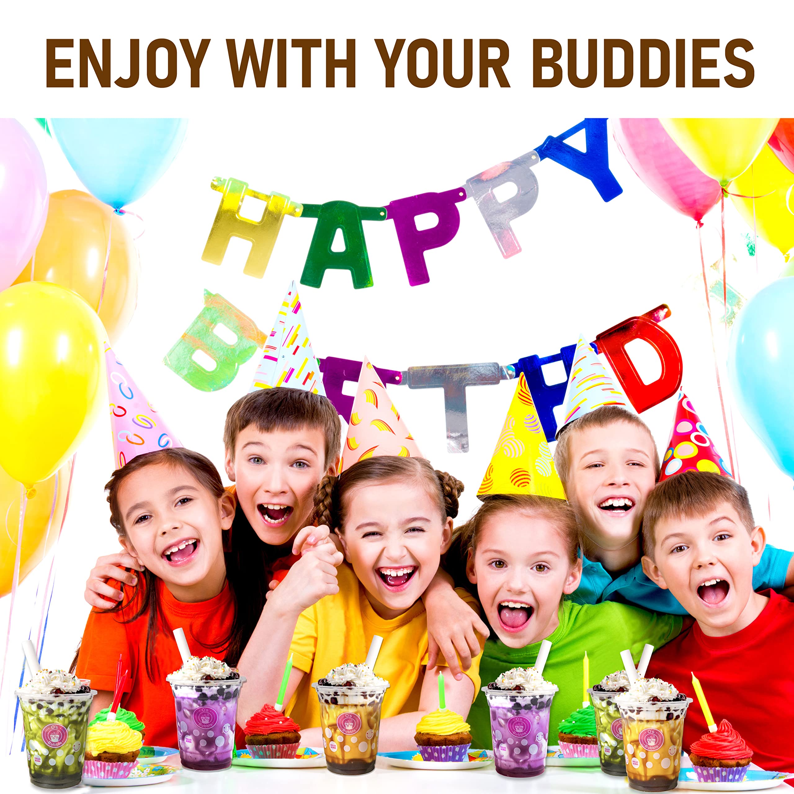 Comes with Instant Boba Tea Syrup, Straws, Cups, Rainbow Sprinkles, Stirrer and 6 Cups for Party!
