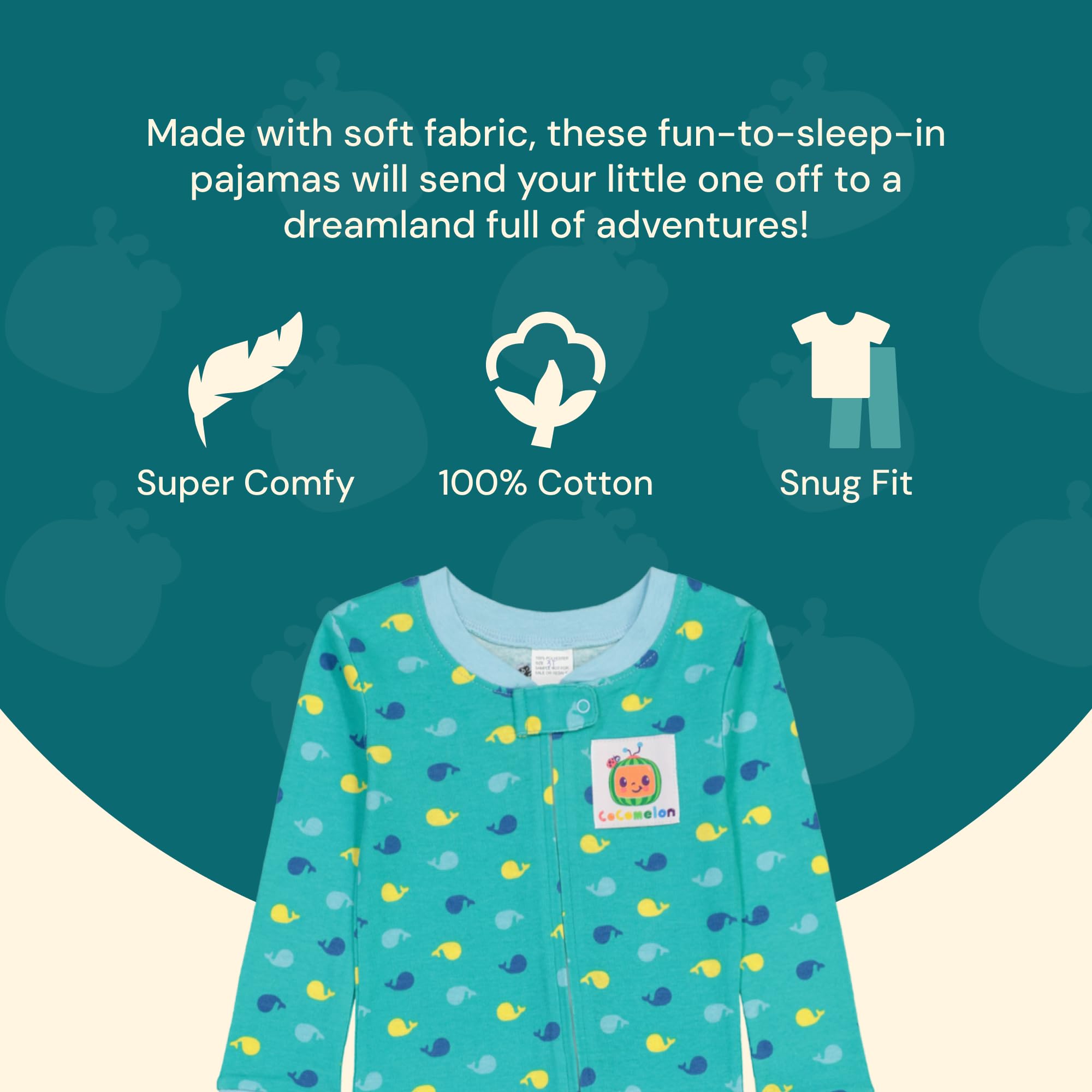 COCOMELON PAJAMAS: Get your little boy or girl ready for bedtime adventures with JJ, YoYo, and TomTom in this fun and cute CoComelon sleeper. These fun pajamas are officially licensed CoComelon merchandise.