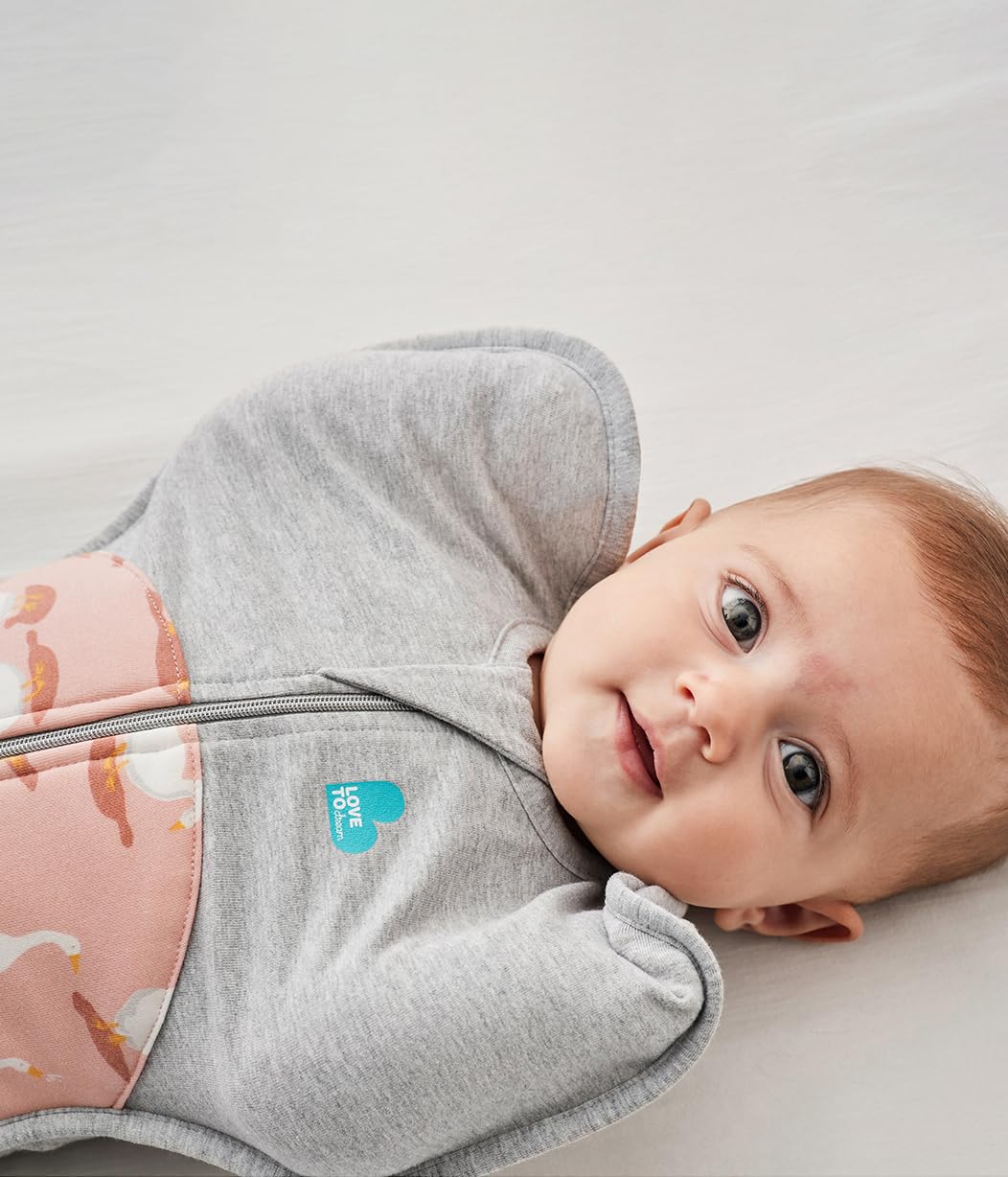 Love To Dream Baby Sleep Sack, Swaddle Up Self-Soothing Swaddle. Sleep never felt this snug with our Swaddle Up Self-Soothing Sleep Sack, available in a range of classic colourways & prints. Our "Arms-Up" baby sleep sack, also known as a swaddle or wearable blanket, is designed to allow baby's arms to be positioned upward and close to their face while they sleep. 83% of parents reported an increase in hours slept by their baby when using Swaddle Up. Baby's Natural Self-Soothing Sleep Position Most babies are more comfortable with their arms near their face, as this mimics the fetal position they were accustomed to in the womb. Allowing their arms to be up can enhance their sense of security and comfort during sleep. The ability for babies to self-soothe by touching their face or sucking on their fingers can be comforting. An Arms-Up sleep sack facilitates this natural soothing mechanism, promoting better sleep for baby. Babies have a startle (Moro) reflex that can sometimes wake them; swaddling with Arms-Up can help reduce this reflex and minimize unnecessary disturbances. Easy to Use, Hip-Friendly Design Our baby sleep sacks are designed to provide ample room for baby's legs and hips to move naturally, allowing for healthy hip development. The clever two-way zipper mechanism means quick and easy diaper changes for any parent, grandparent, or carer, even in the middle of the night. 2.5 TOG Warmth & Materials This 2.5 TOG material is ideal for cooler room temperatures between 61Β°F & 68Β°F. Fabric content: Outer & Lining: 93% Cotton, 7% Elastane; Filling: 100% Cotton. The fabricβs gentle stretch allows comfortable layering underneath for added insulation when needed. From the unique, award-winning Swaddle Up, to bedding and self-soothing toys, the Love To Dream range has grown to provide a portfolio of sleep solutions designed for children up to four years old.